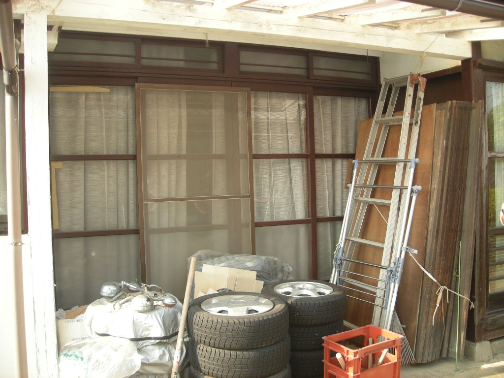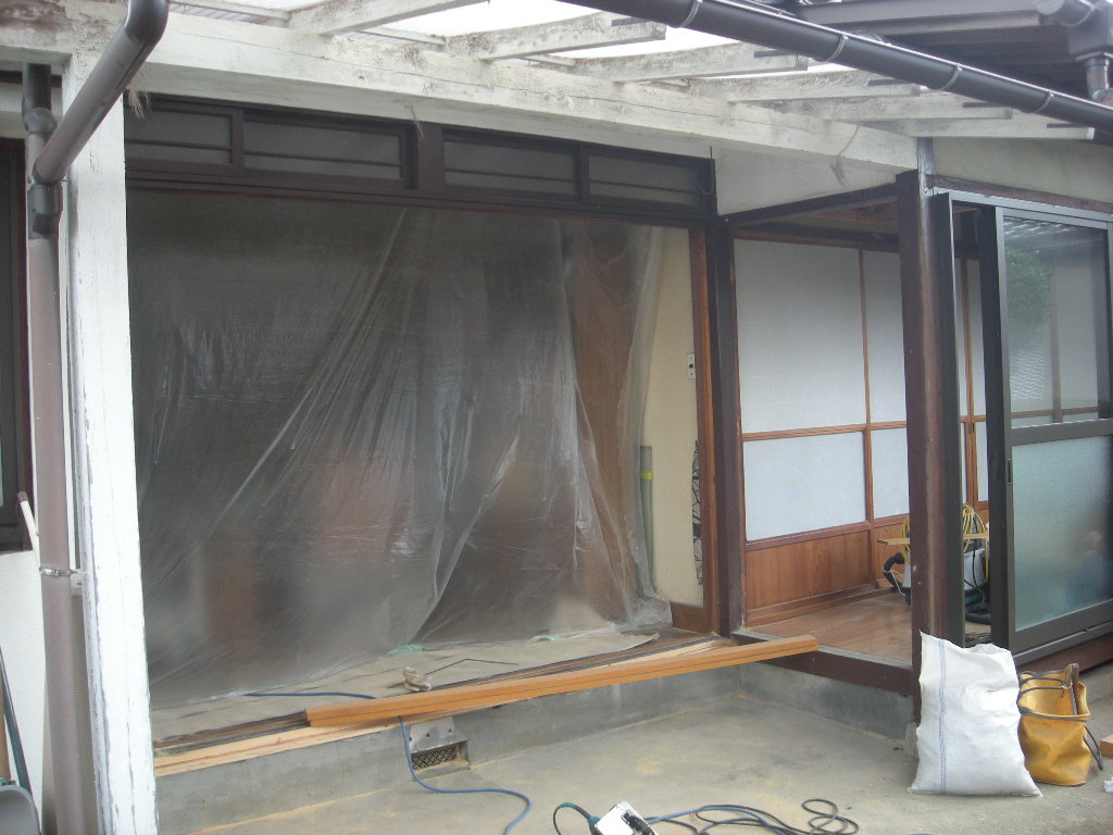 こちらの既存の木製サッシも撤去し、広縁側の側面の壁も解体しました