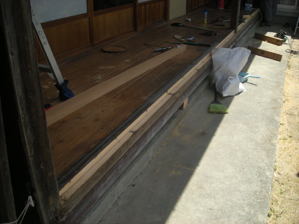 広縁側面の壁の外廻りはヨドプリントを室内には化粧ベニヤを張り、最後にこの部分の障子(ガラス戸)を収め完成です!!