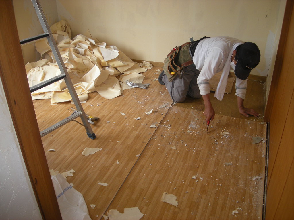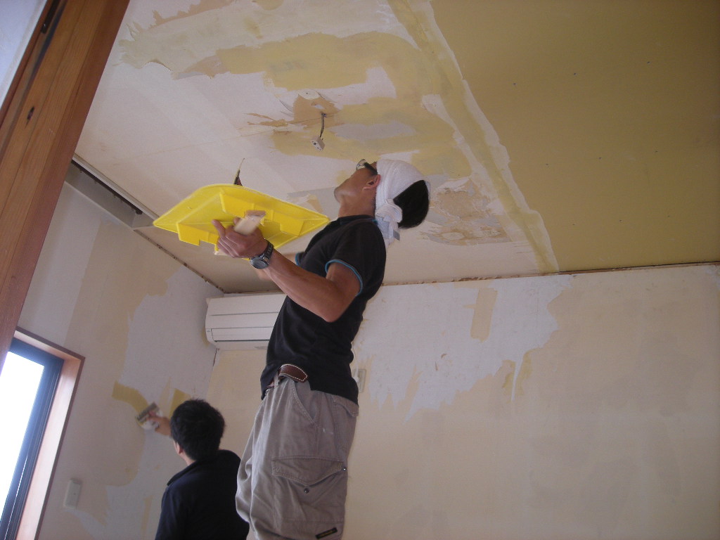 つづいてクロス屋さんが入り、パテ打ちから始めます!!