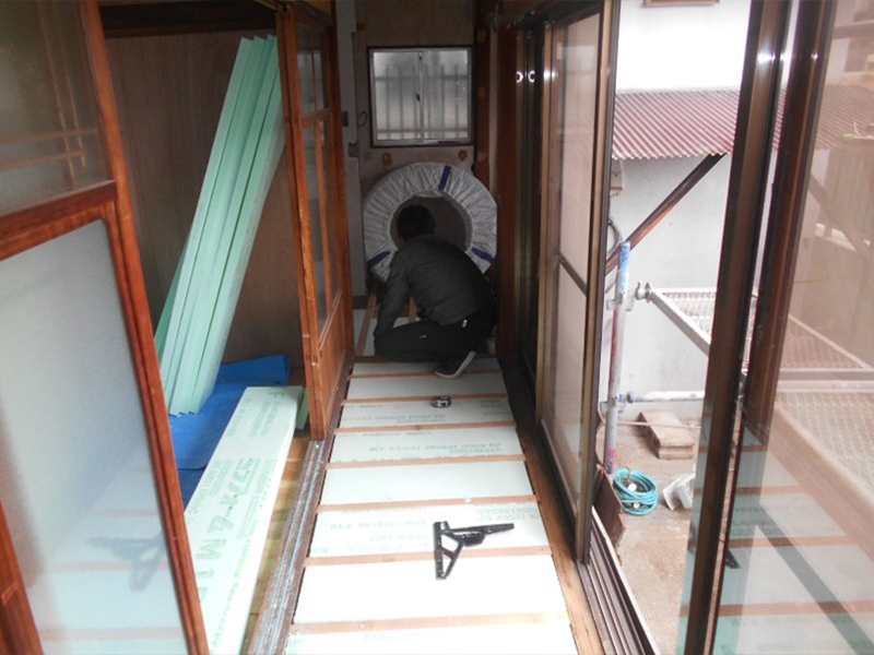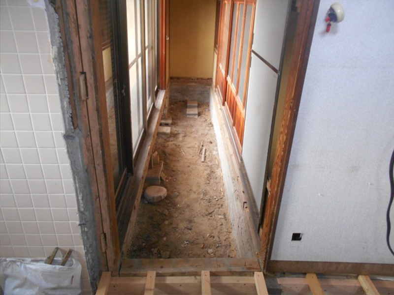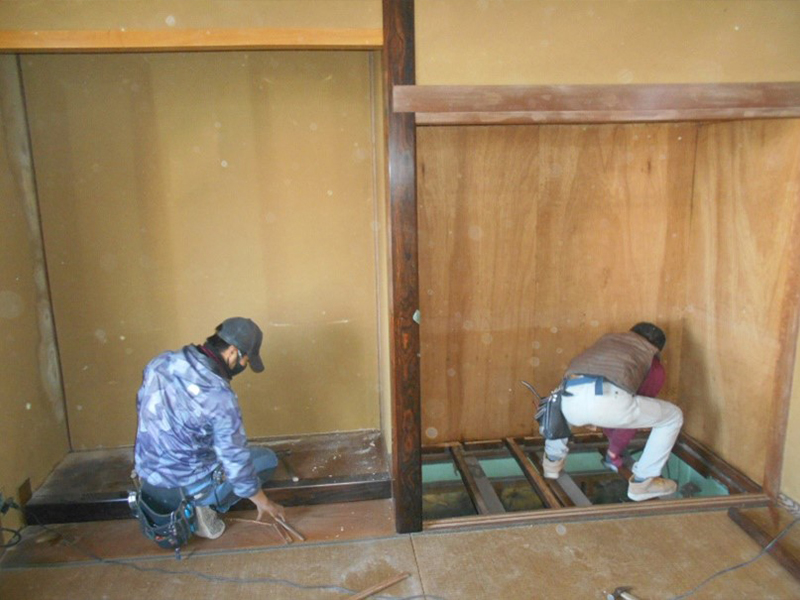 ・畳下がブカブカするので、座板と根太まで解体撤去し、部屋の傾きを調整後新規の根太と座板を施工し畳は新床にしました。