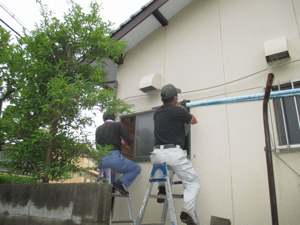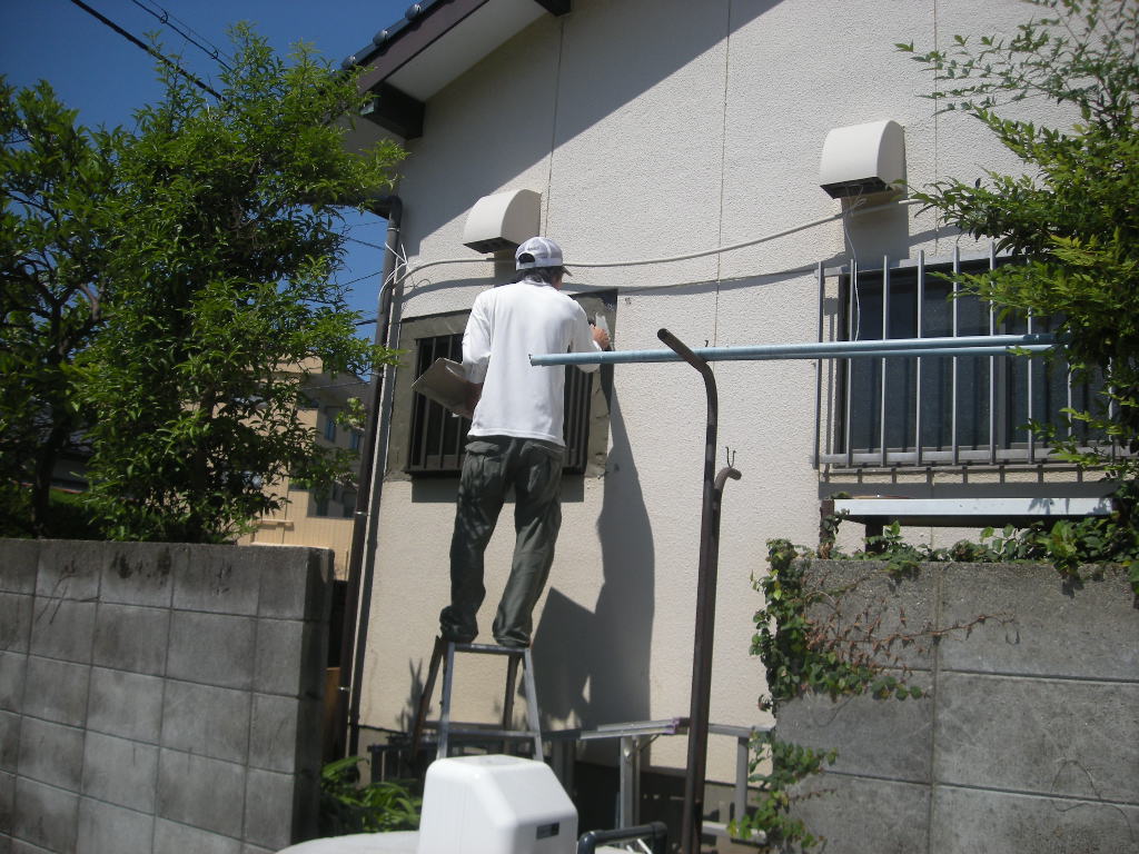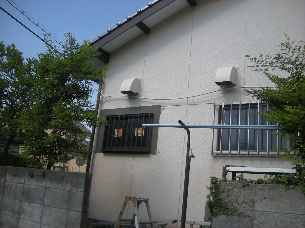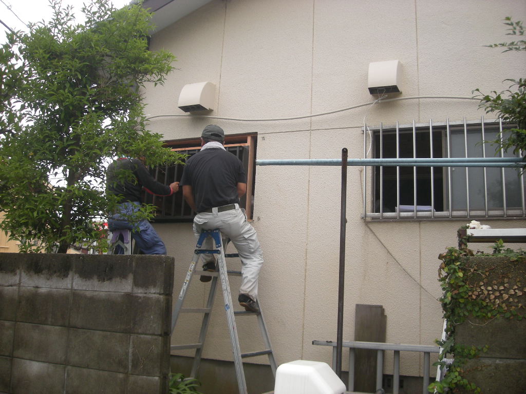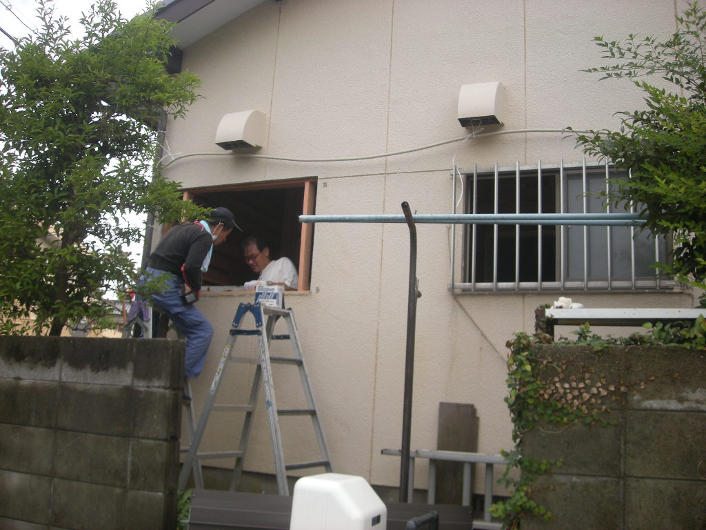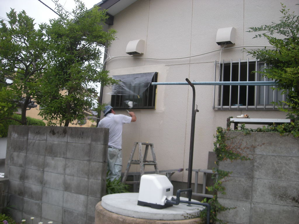 ⑦、モルタルが乾いたら塗装屋さんが入り、塗装をします!! ⑧、塗装が完了しました!!
