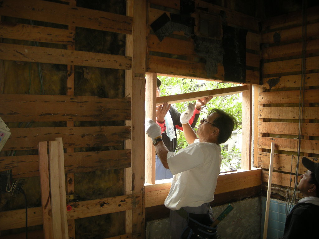 ①、既存のサッシを撤去します!! ②、新規サッシを取付けるための枠を施工します!!