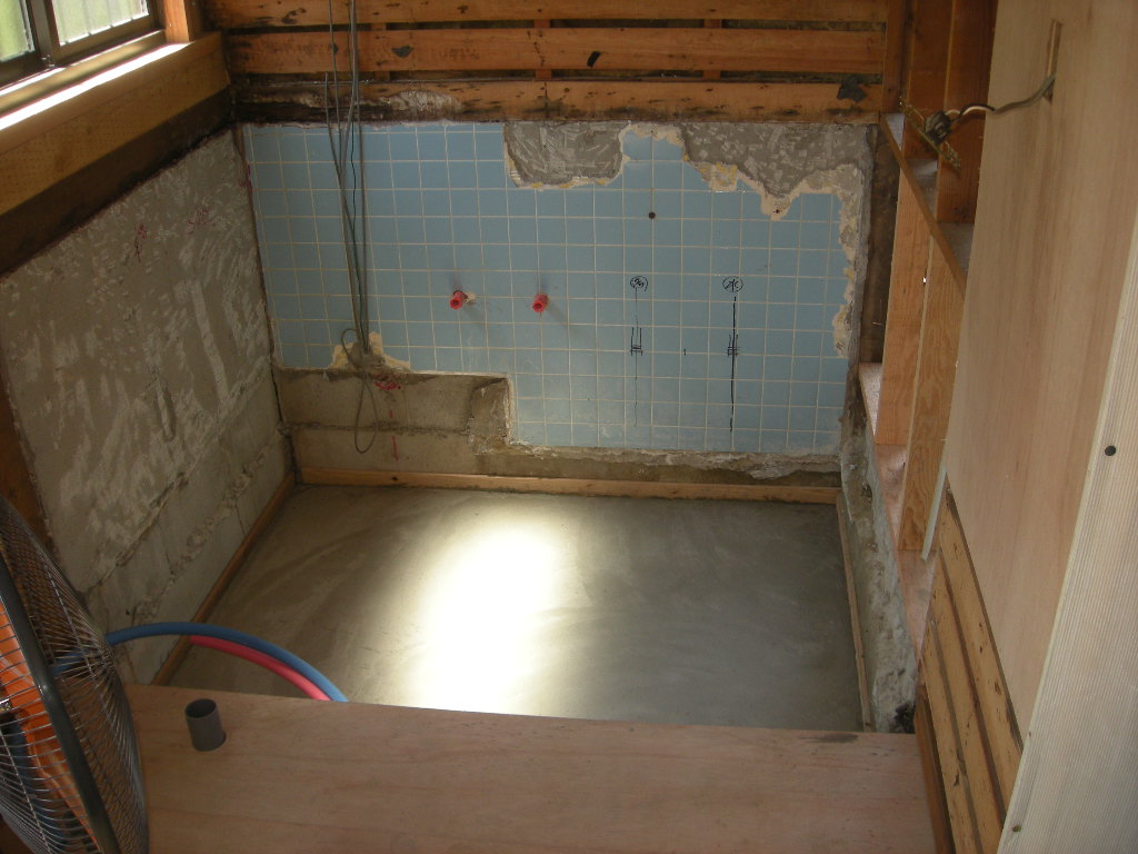 浴室の土間にコンクリートを打ちます!! コンクリート打ちの完了です!!