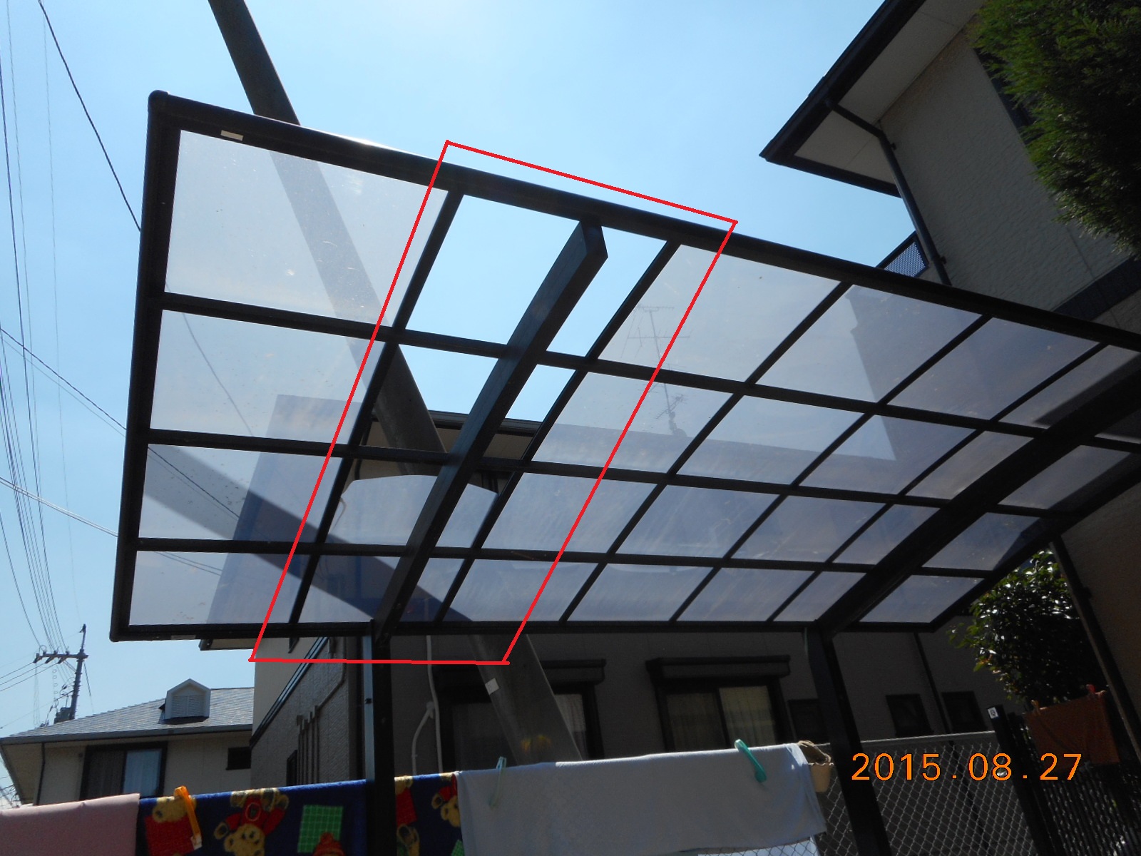 カーポートの屋根の波板の一部が剥がれました!!