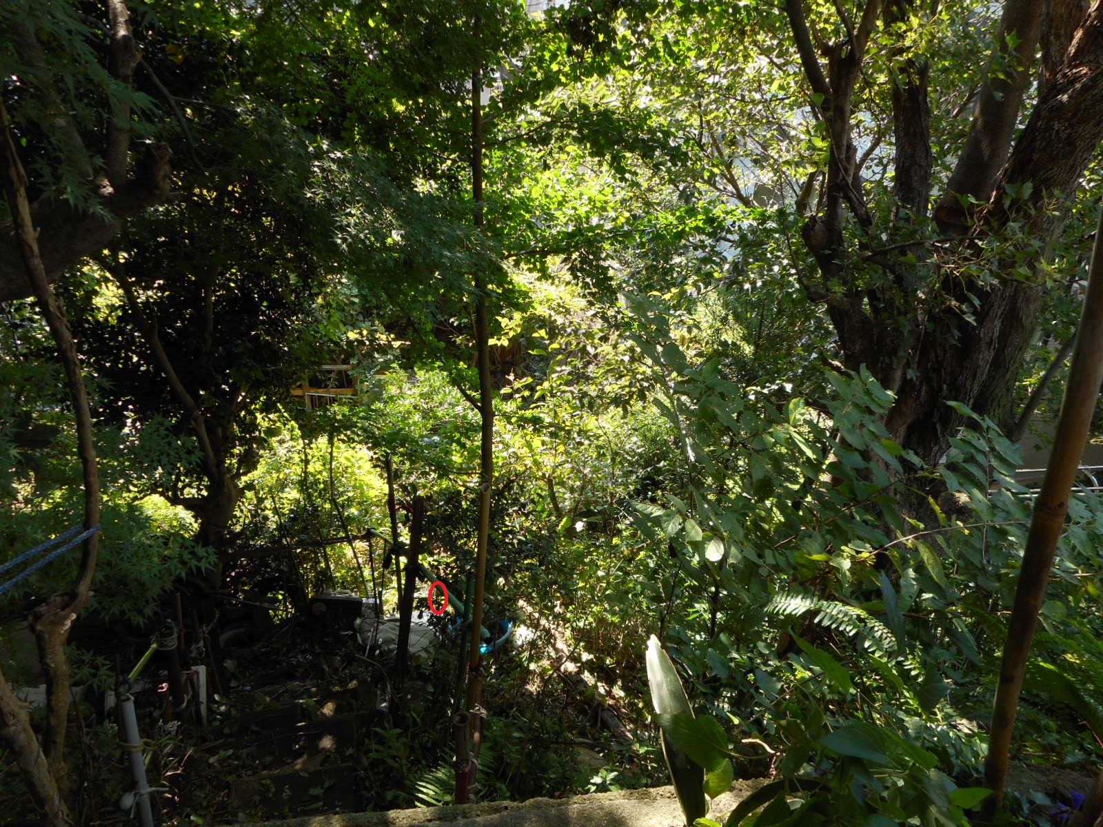 写真では分かりにくいと思いますが、山の中腹にあるお家で、ここから下に40mくらい下の道路の側溝まで