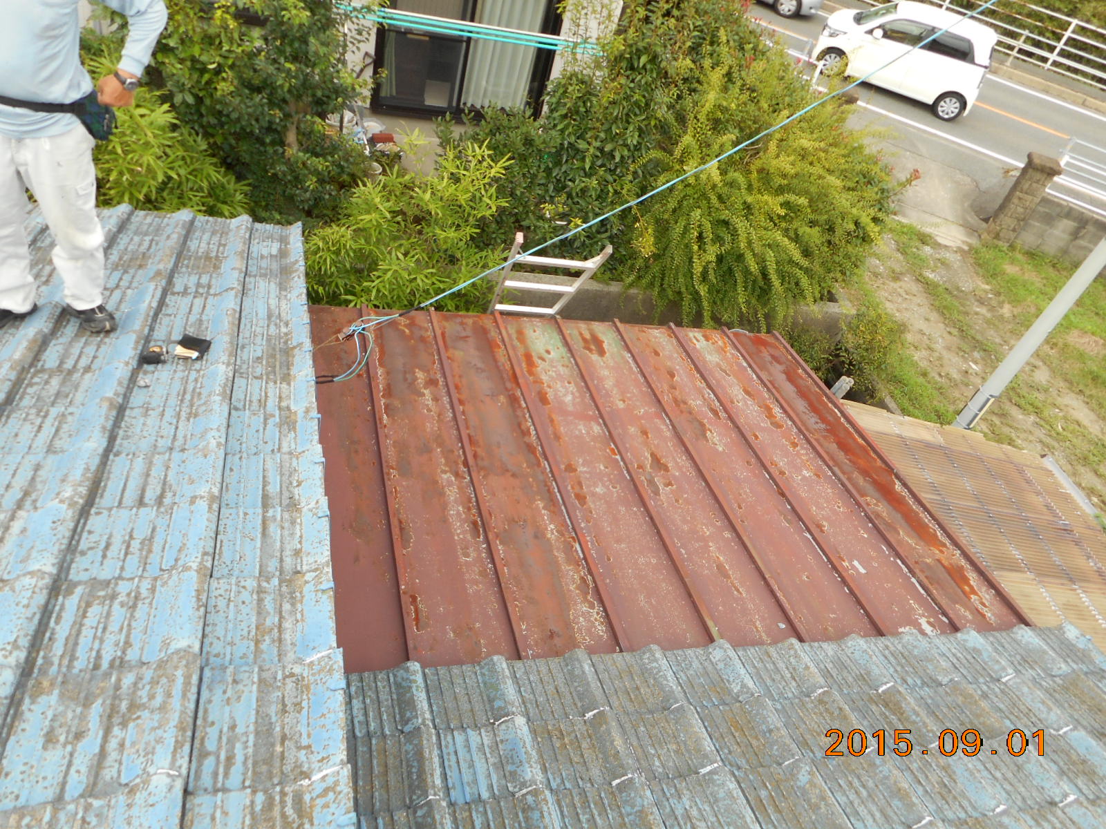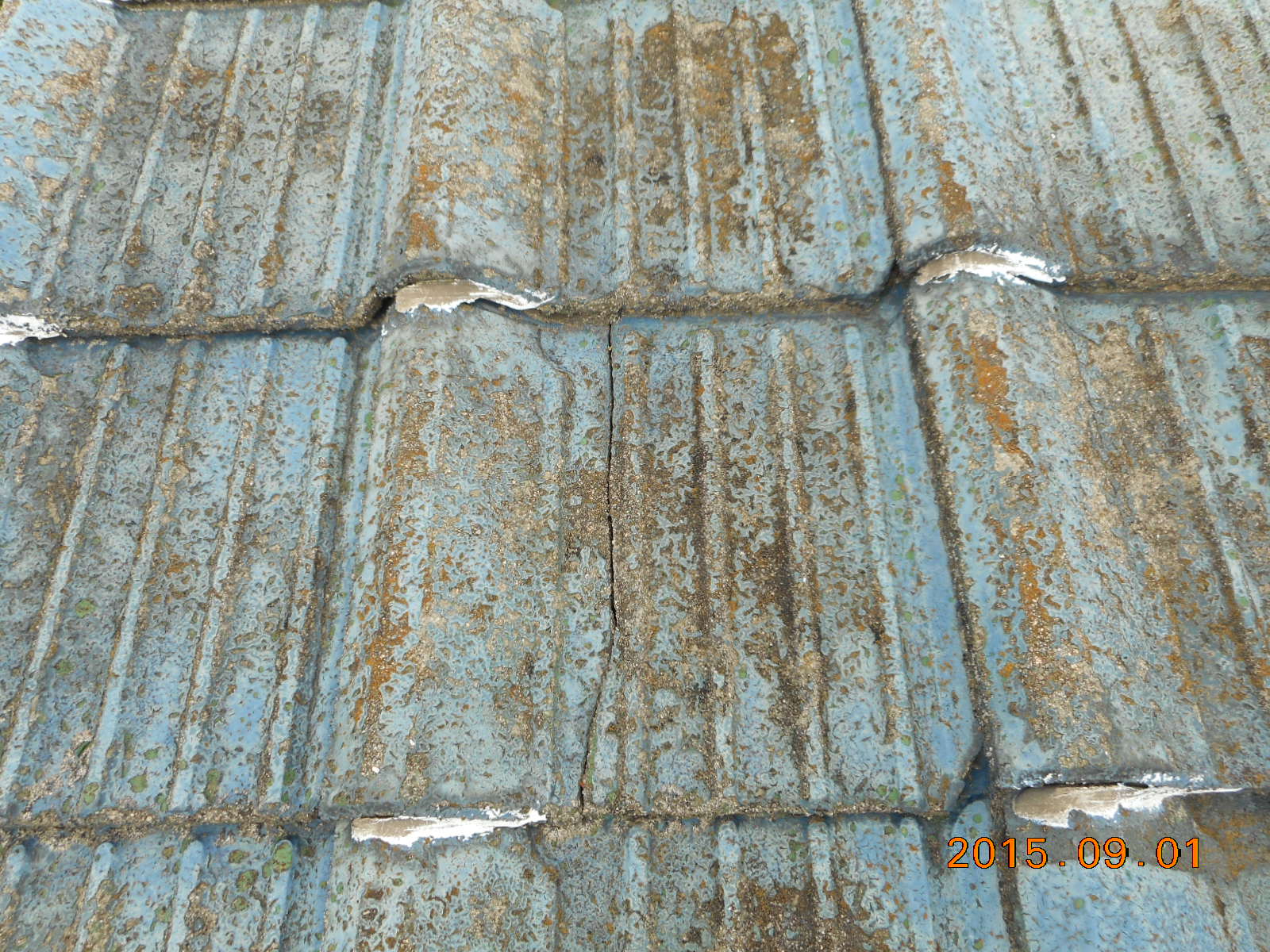 | 瓦の状態も悪く、いたるところに亀裂があります!! | 瓦棒も、いたるところに穴が開いていて状態も悪いです!! |