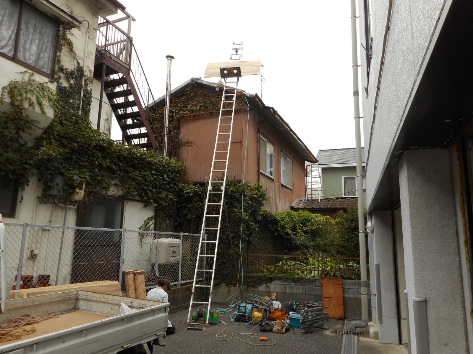 ここまでが初日の作業でした。(これで、とりあえずは雨が降っても心配ありません)