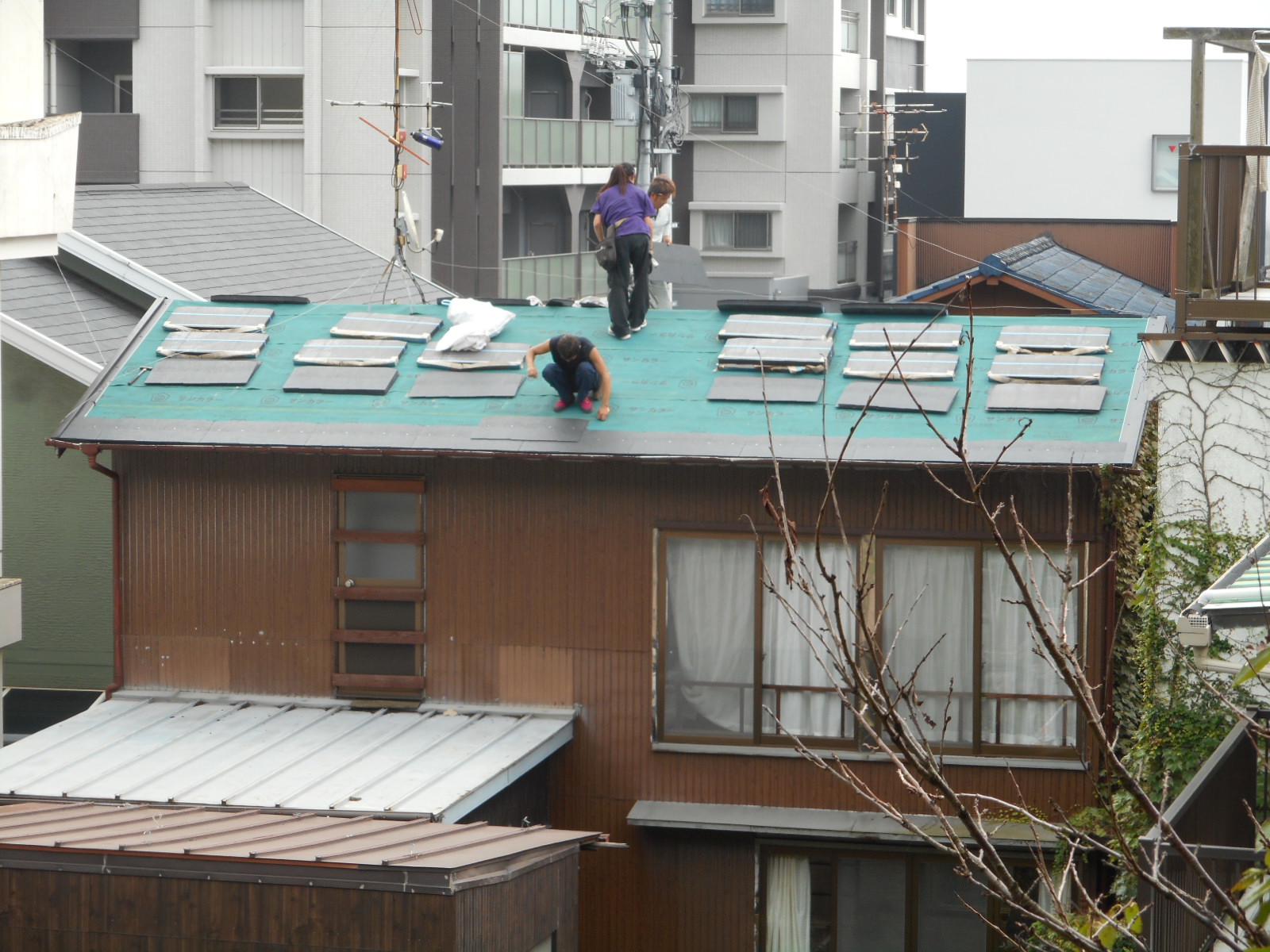*雨のおかげで1日順延して9/4に新規の瓦(コロニアル瓦)の施工に入りました。