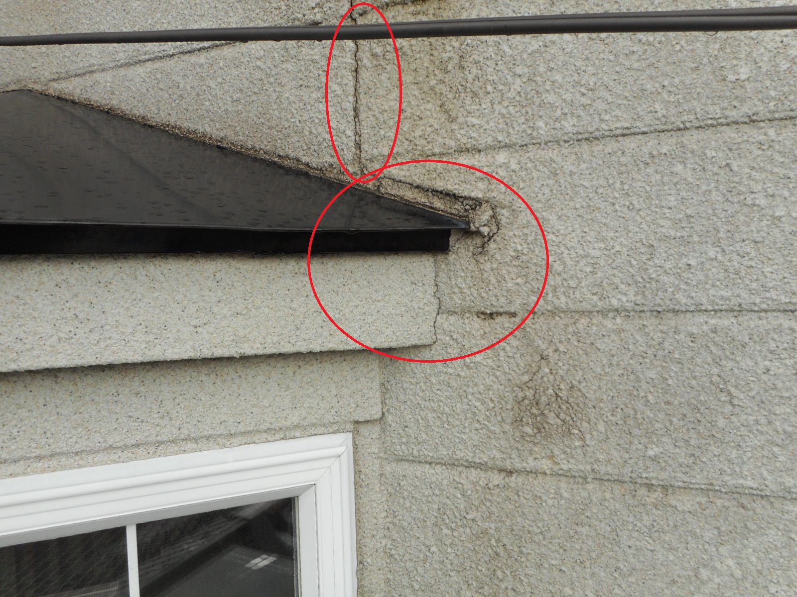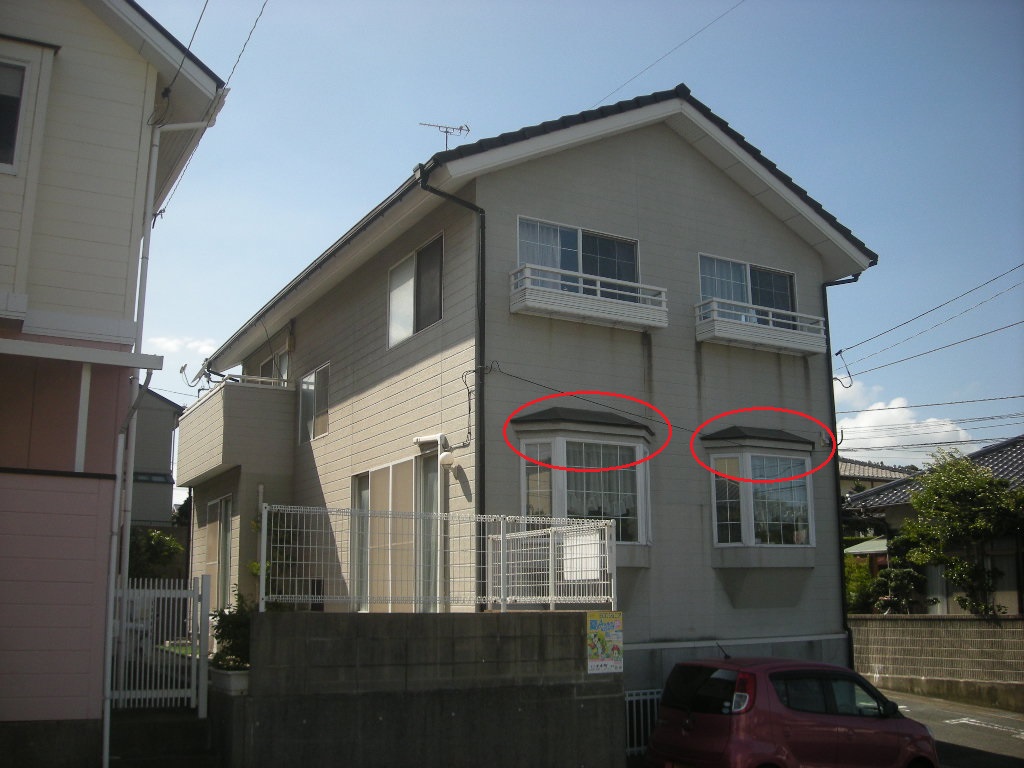 赤○で囲った2Fの出窓の廻りも下の写真の様に亀裂が入っています!!