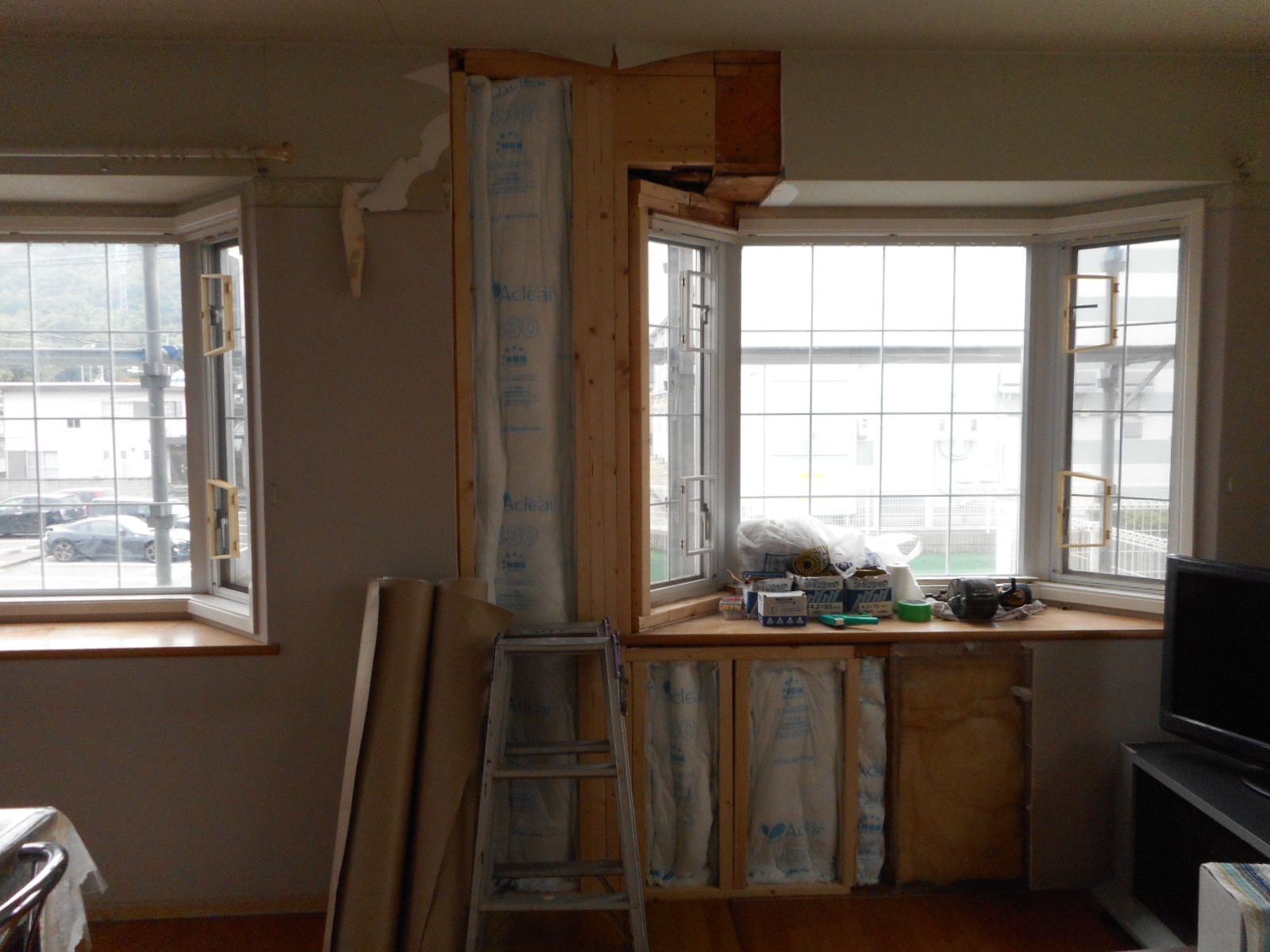 シロアリのよる被害部分を撤去後下地づくりをし、新たな断熱材を入れました!! |