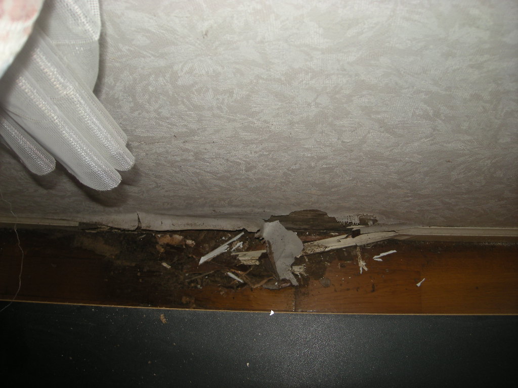 | 壁の一部を解体して見たところ、シロアリ被害が広範囲だったので、ご覧の部分まで解体しました (断熱材は水を含んでビチャビチャ状態でした)!! |