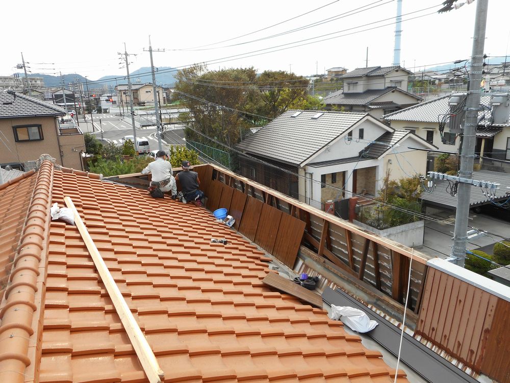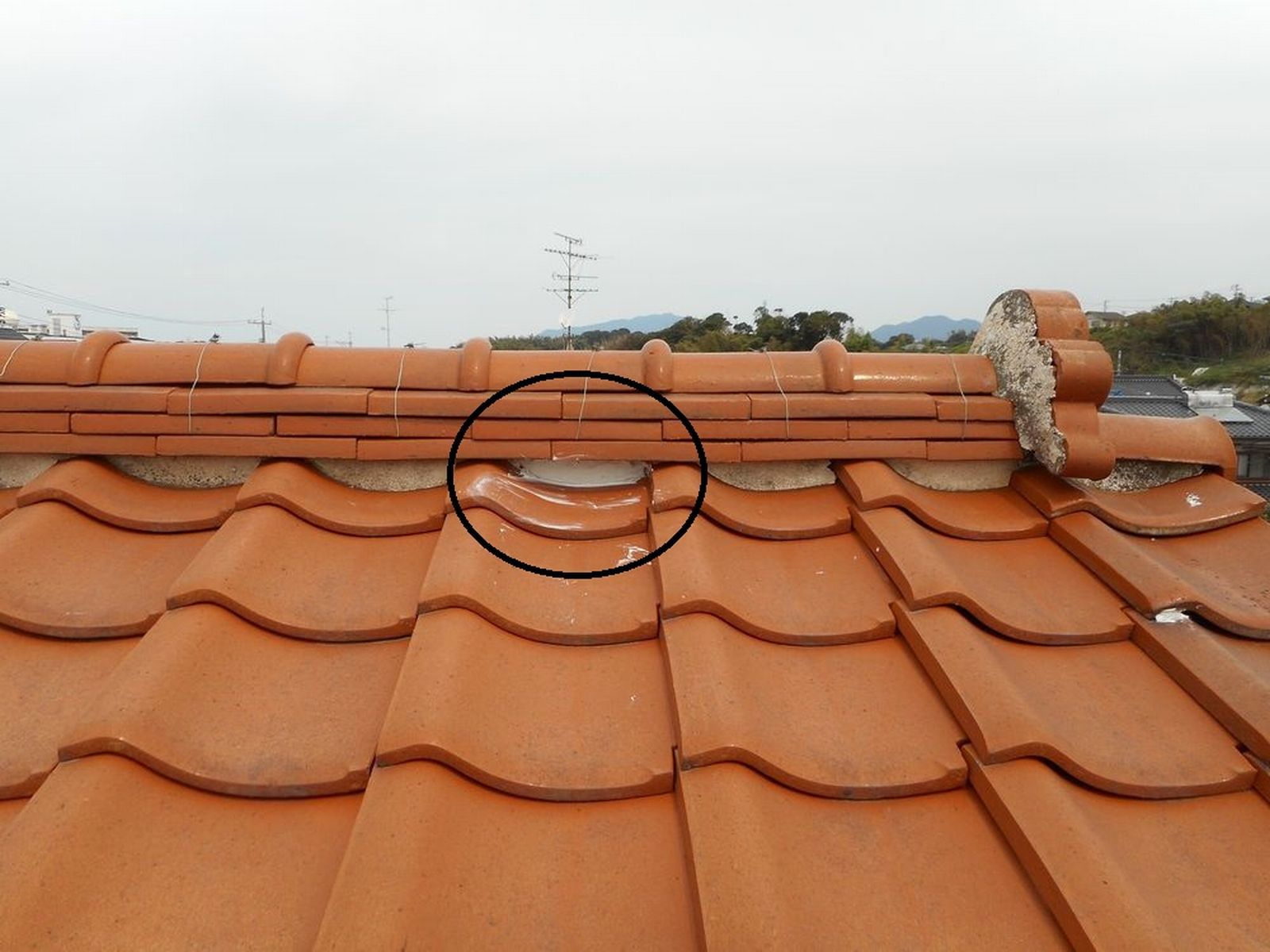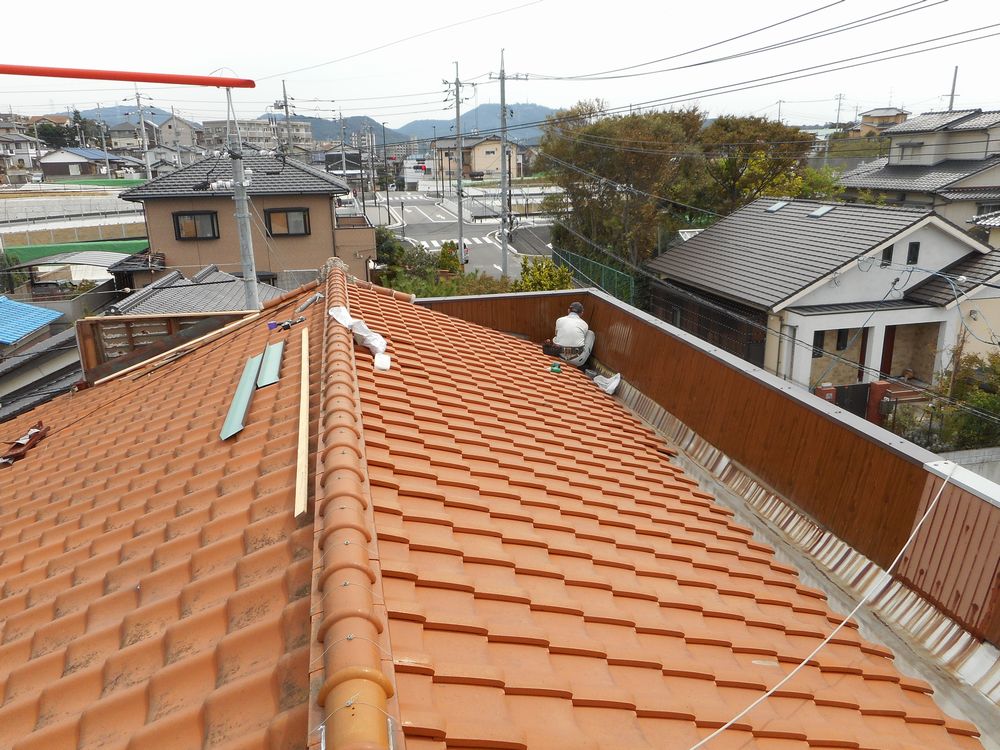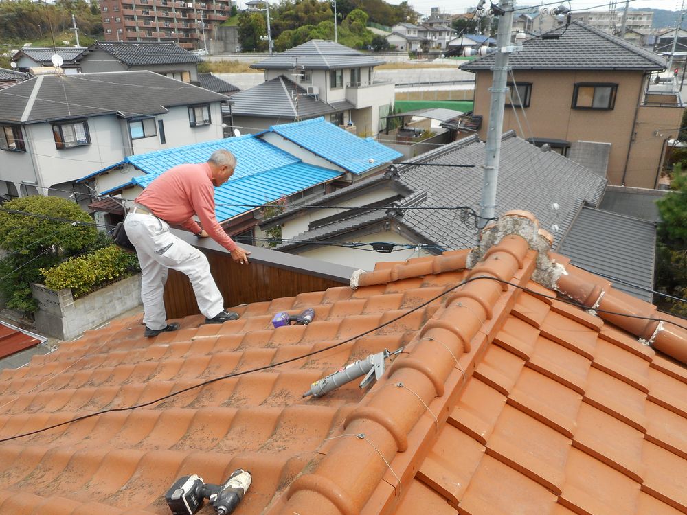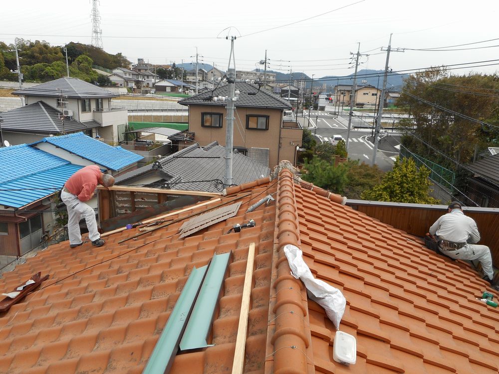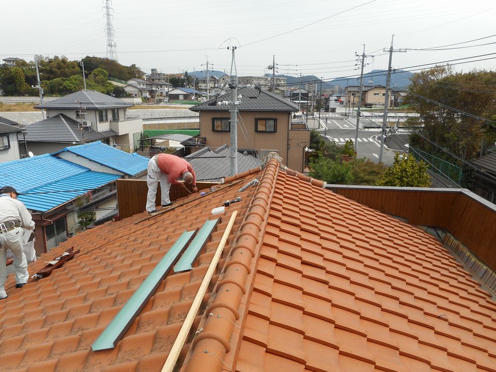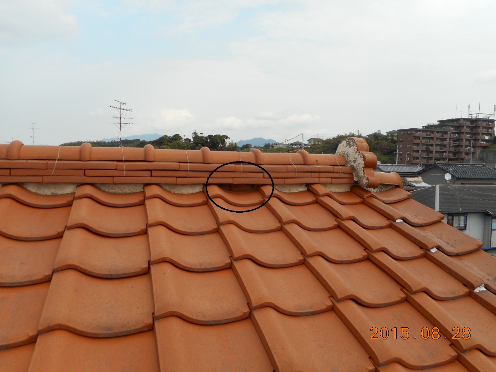 *棟の、ノシ瓦の下のシックイの崩落した所も5箇所ほど修理しました。