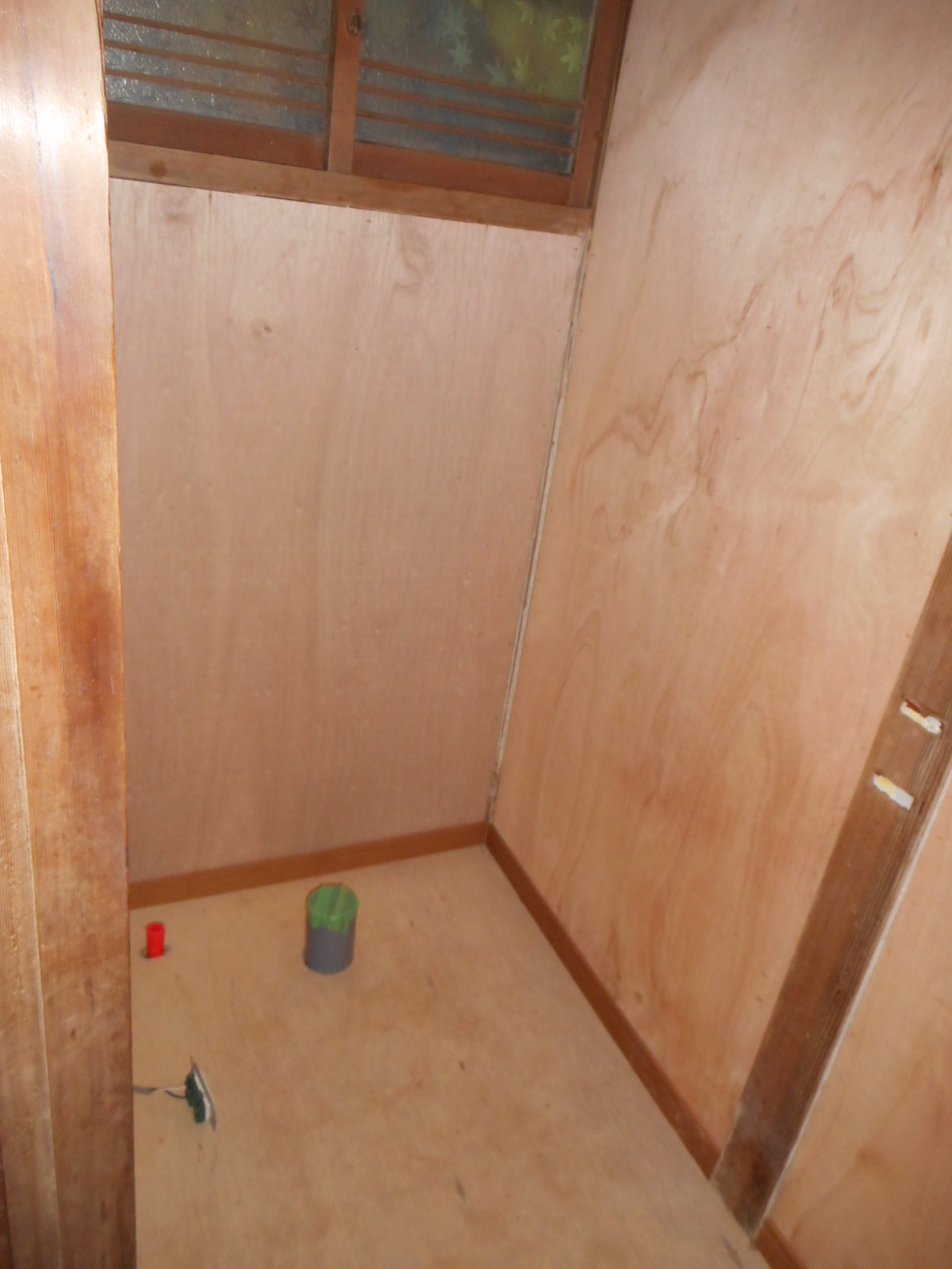 | コンパネを施工するための、下地づくりをします!! | 下地づくり後、クロス下地のコンパネを施工しました!! |