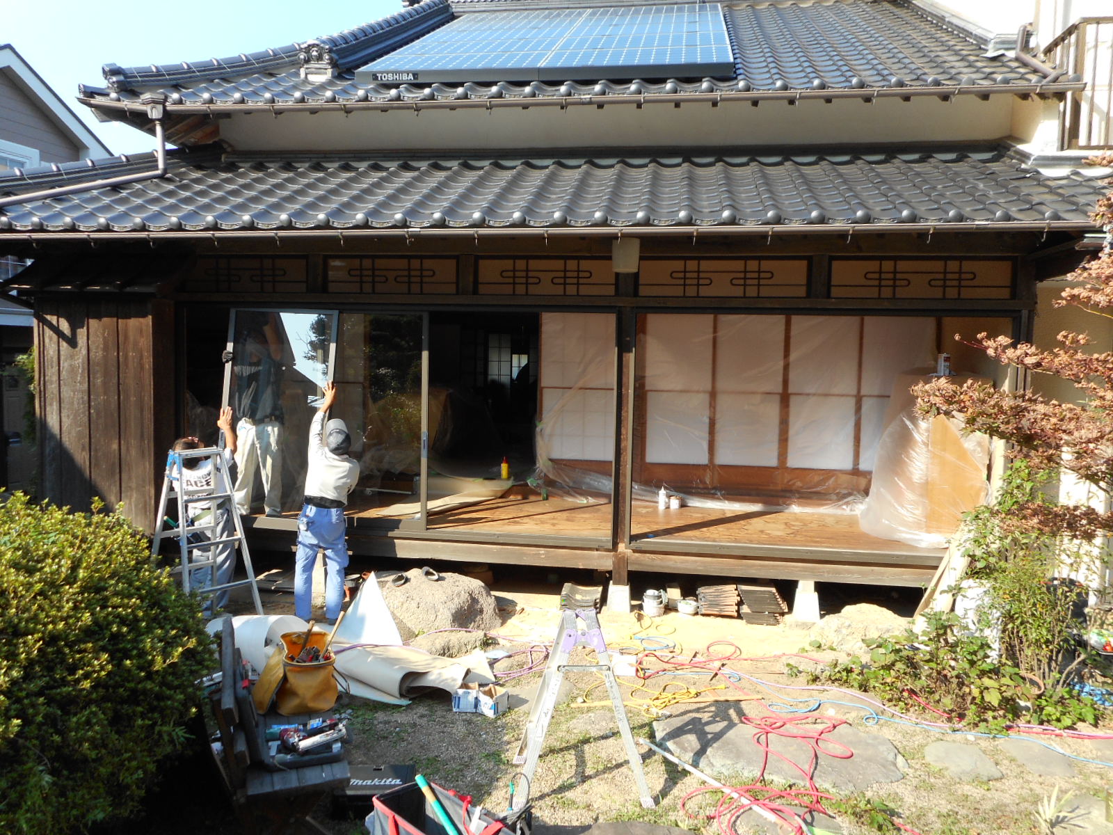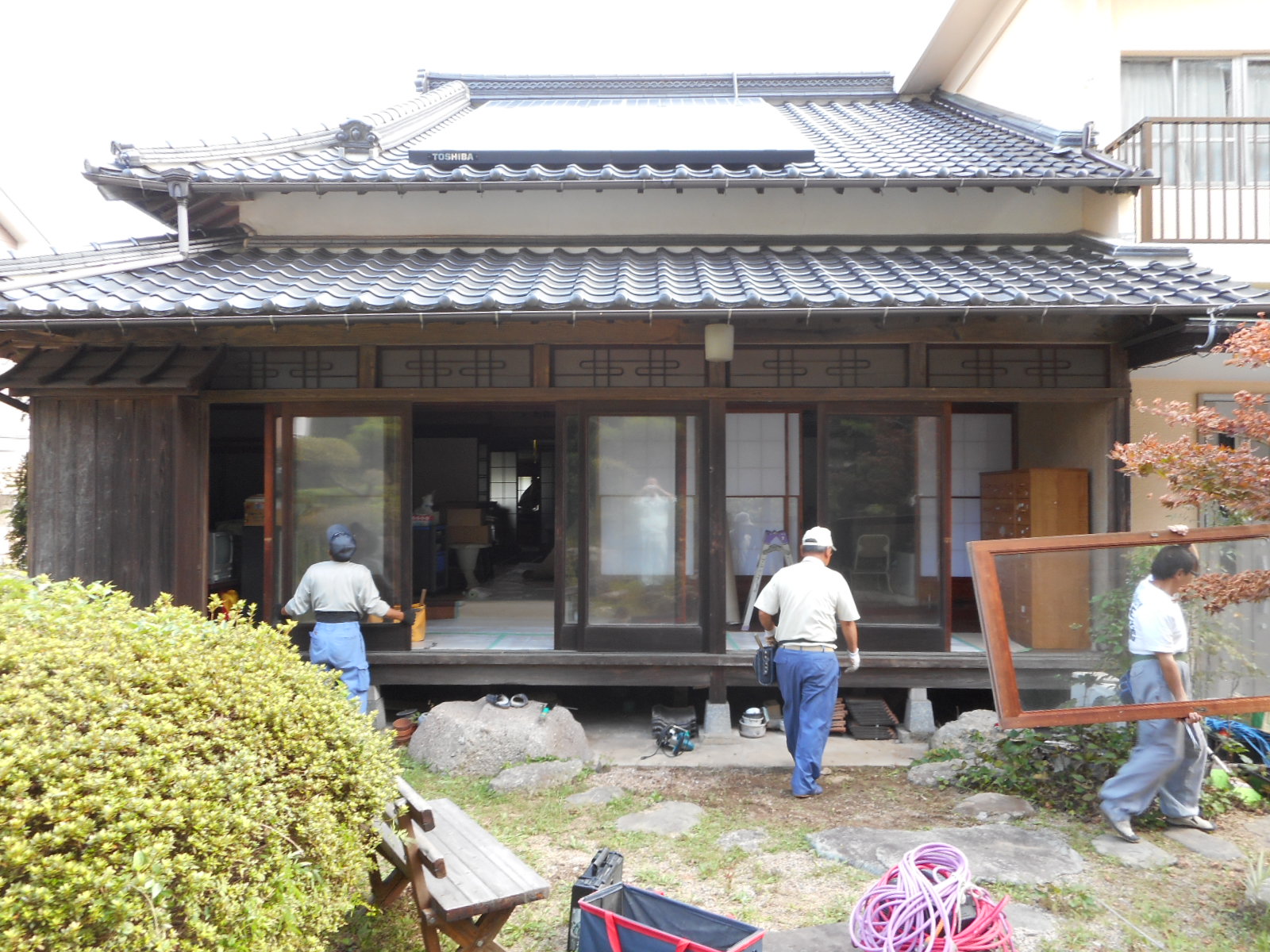 先月、稗田町で広縁のサッシの交換と4.5畳の和室を洋間に改修する工事を行いました。