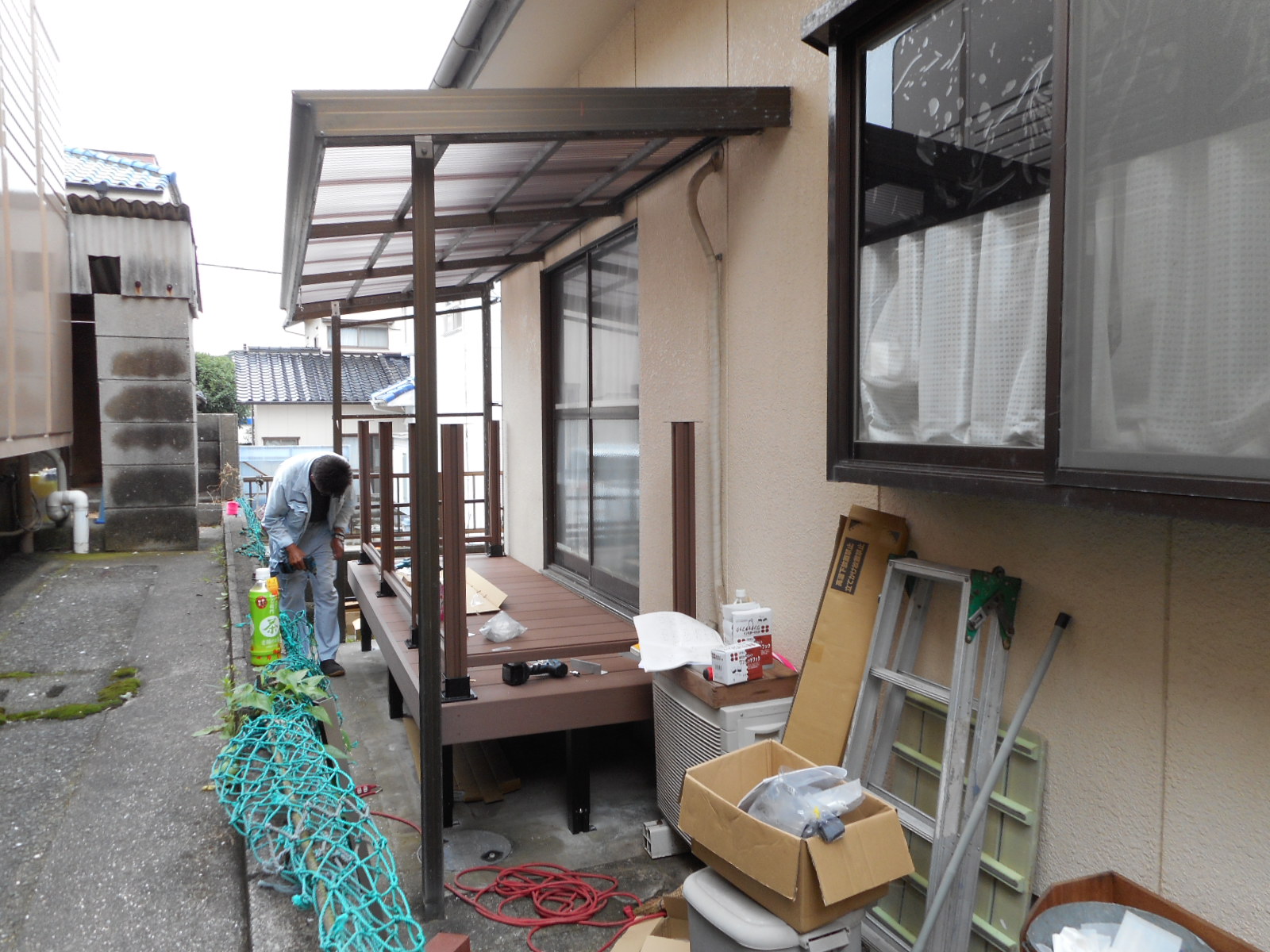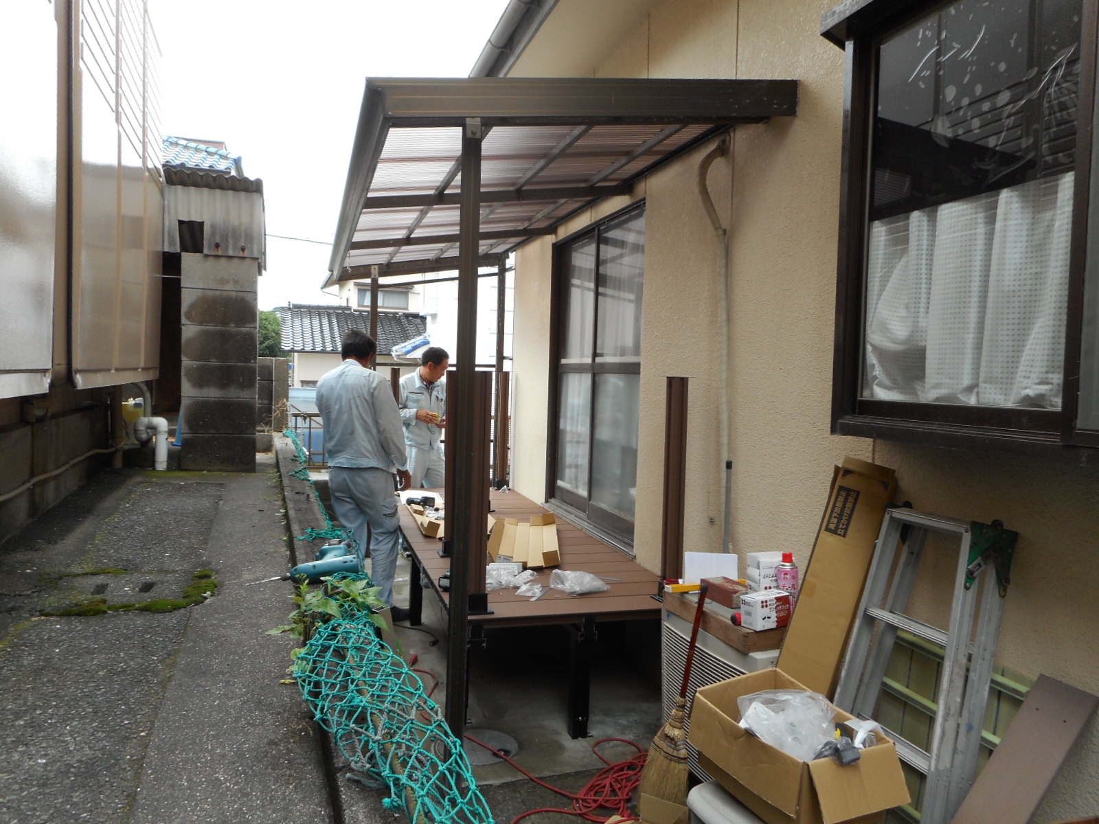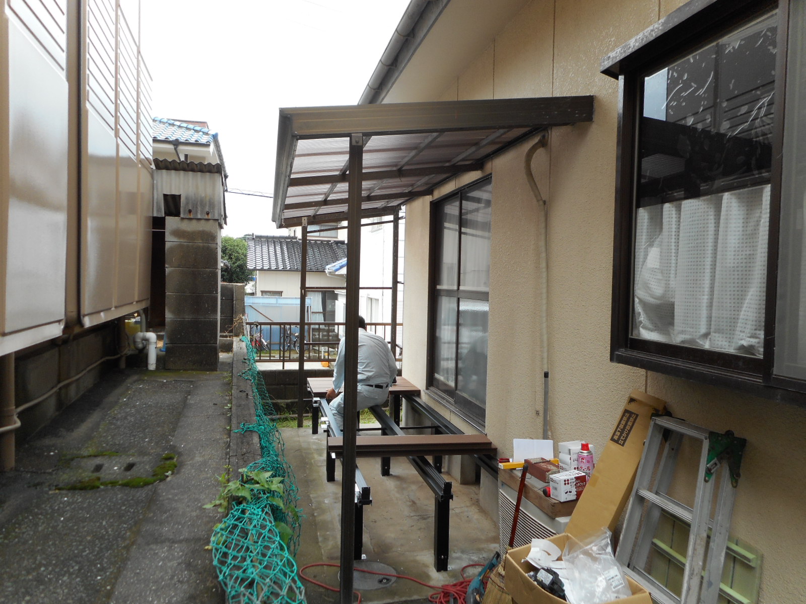 先日、当社のすぐ近くの垢田町で、既設テラスの屋根の波板の張替えと、自分で造ったと言う