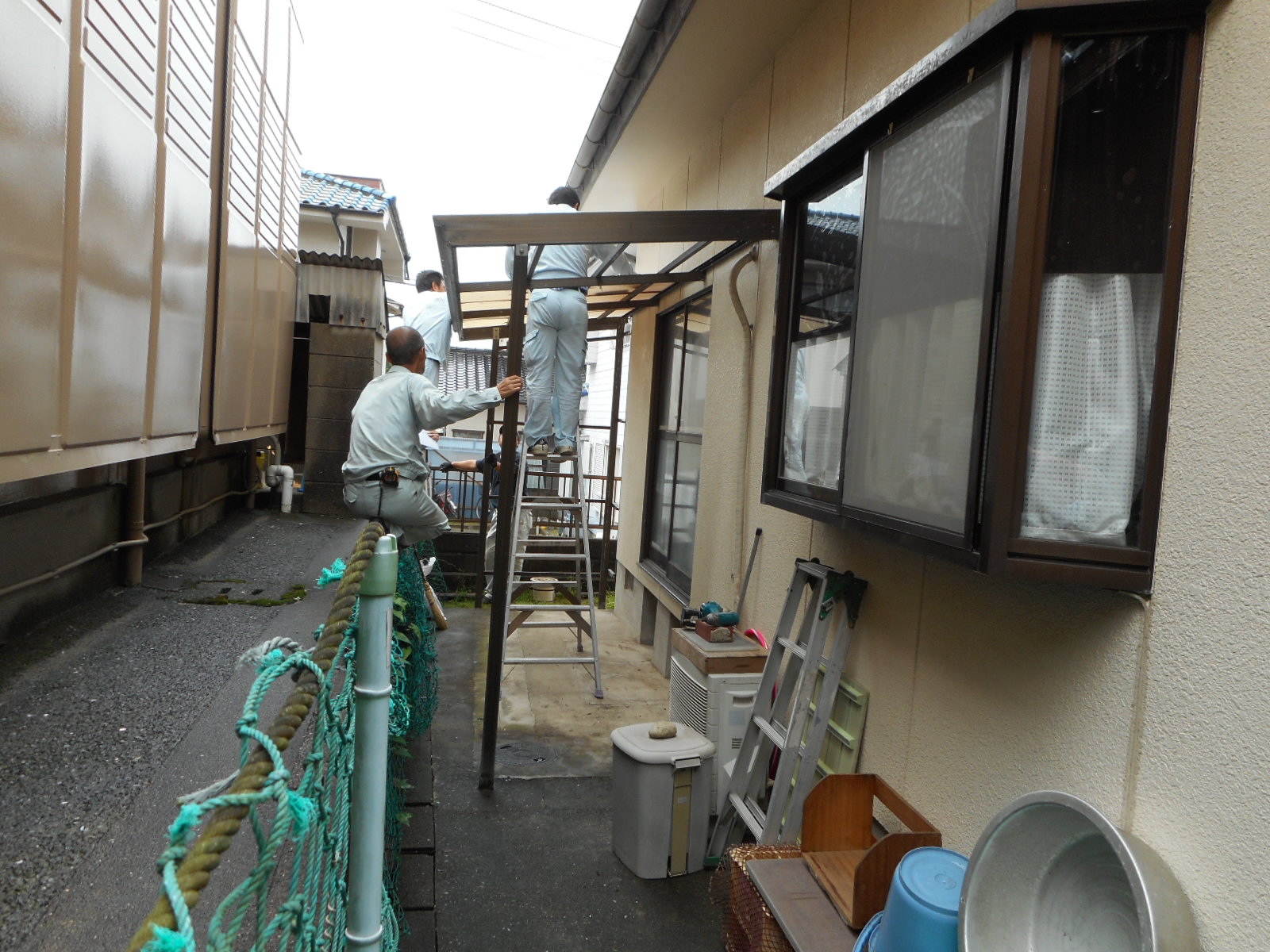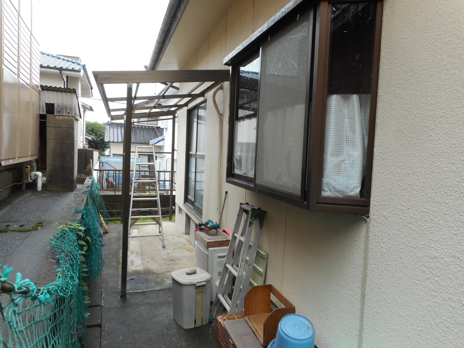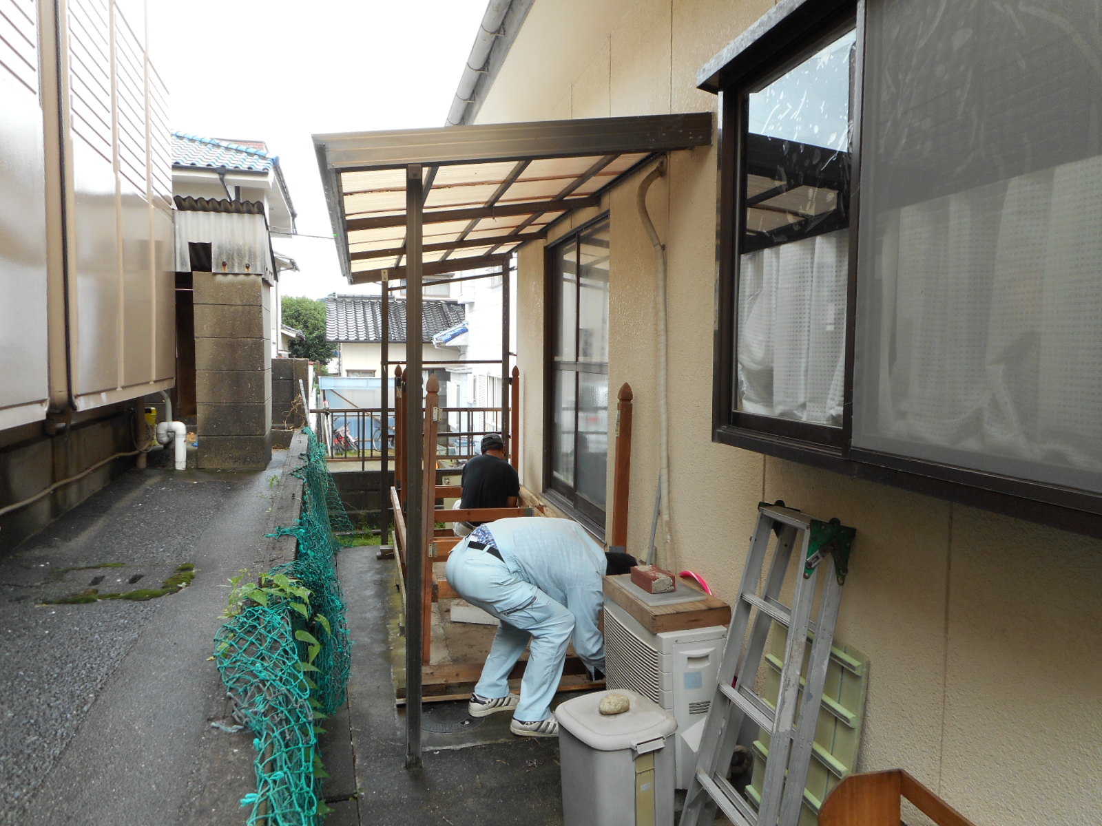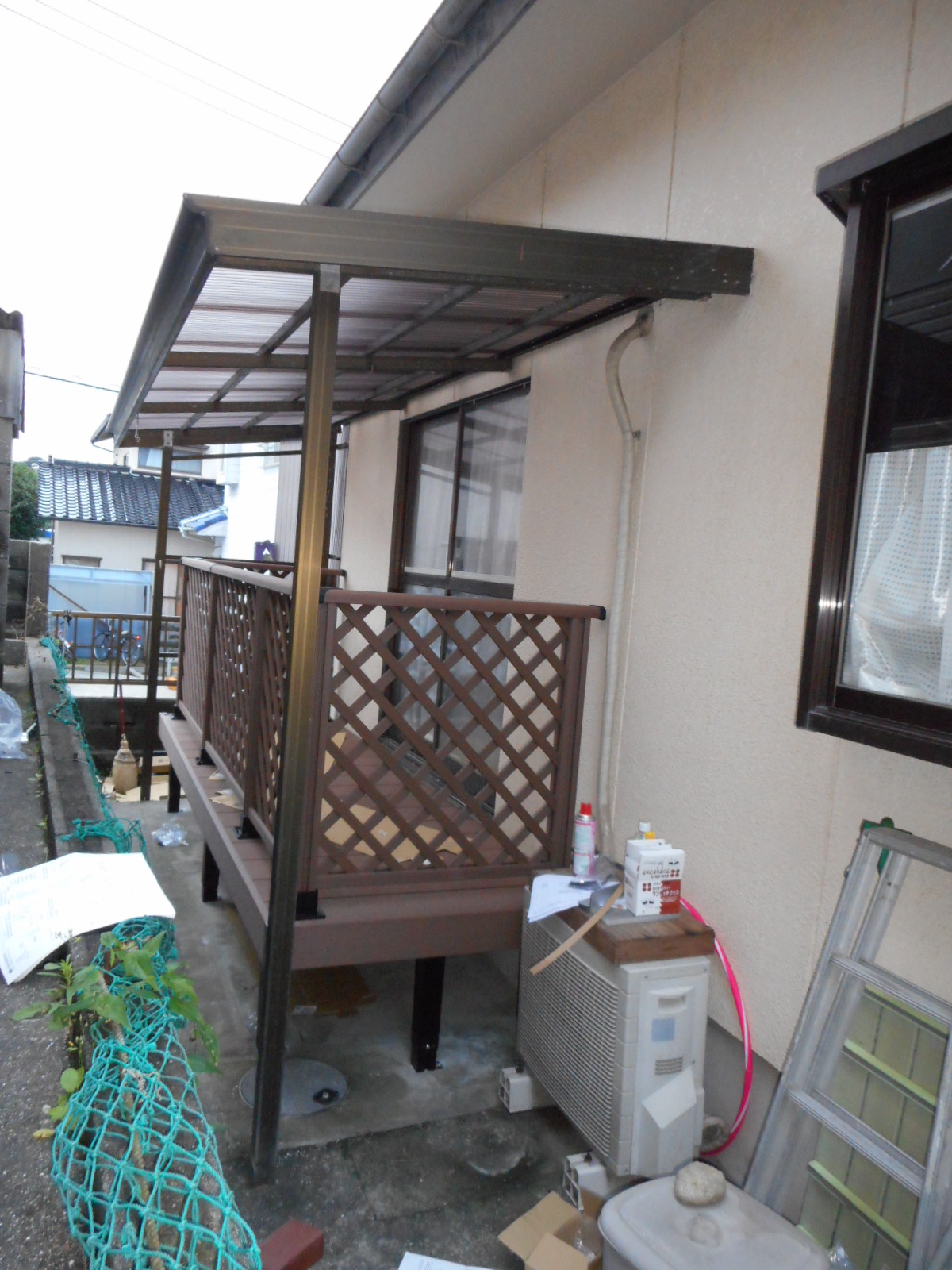 先日、当社のすぐ近くの垢田町で、既設テラスの屋根の波板の張替えと、自分で造ったと言う