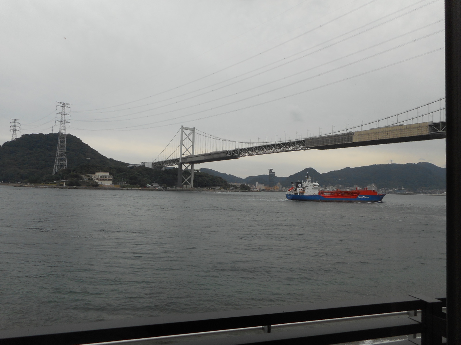 窓越しに関門海峡が一望でき、大変いいロケーションでした!!