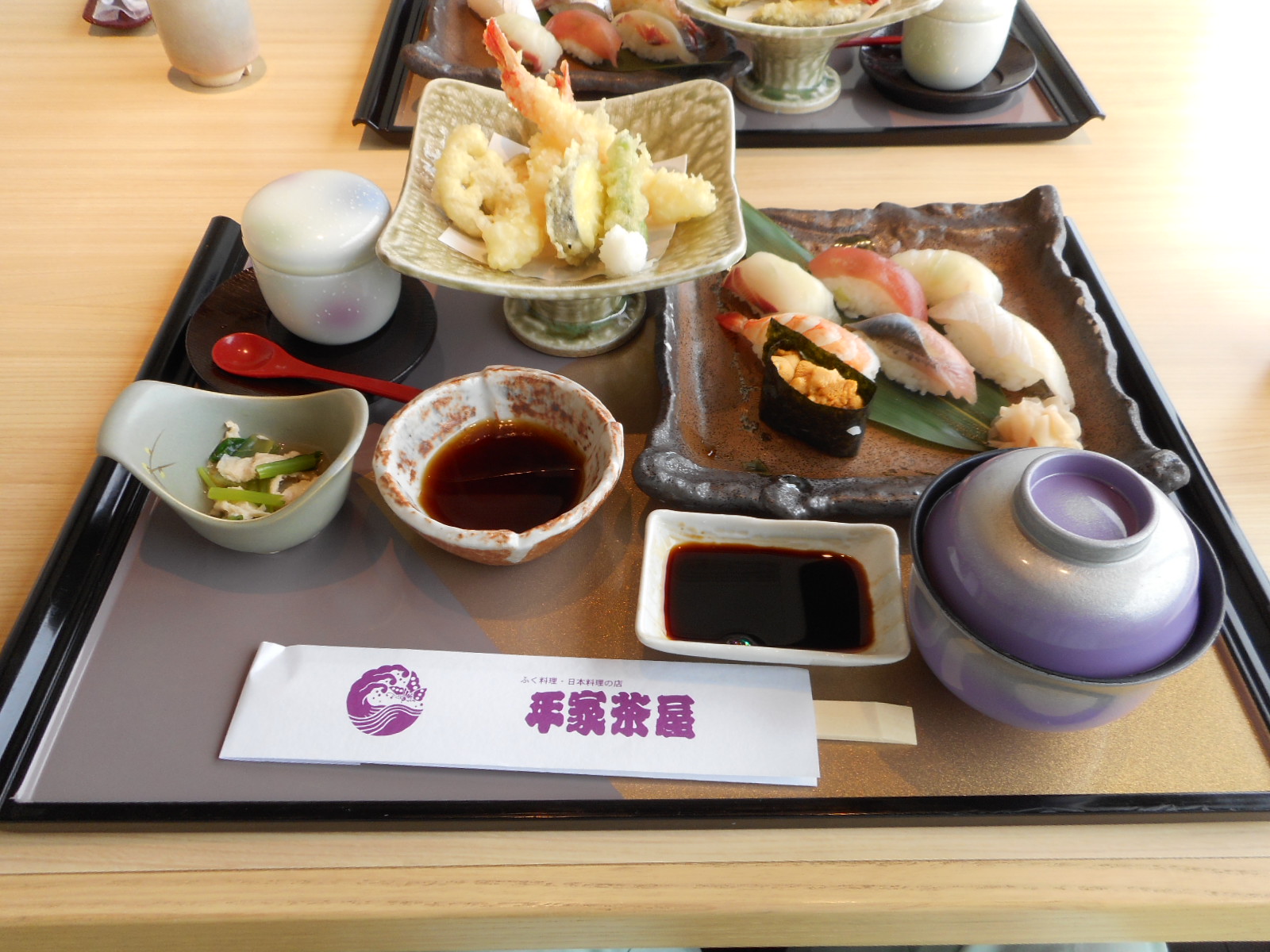 私たちは個室で、寿司御膳をいただきました(前菜、お吸い物、茶碗蒸し、てんぷら、そしてメーンのお寿司)!!