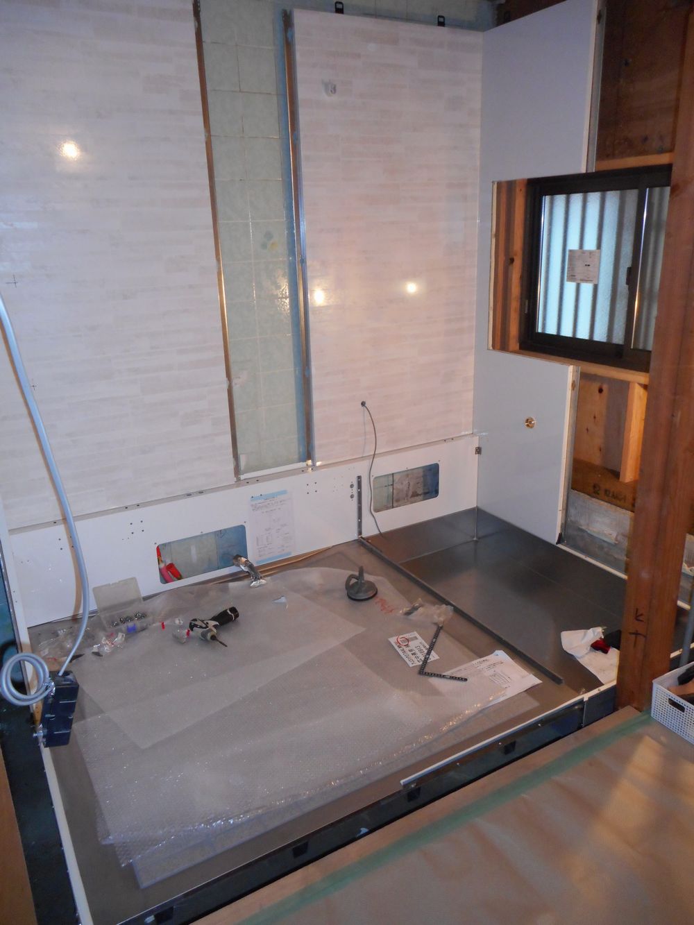 *前回は解体から、新規のシステムバスを組む前の準備作業までの様子を紹介しましたが、今回は、新規のシステムバスの組立てから完成までの作業の様子を紹介します。