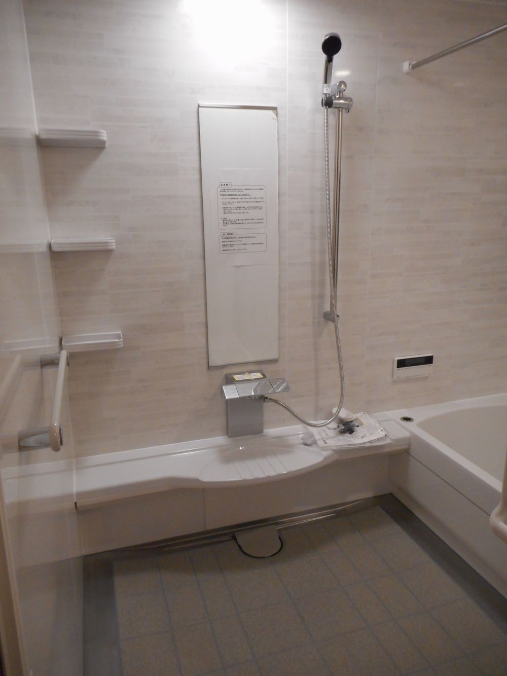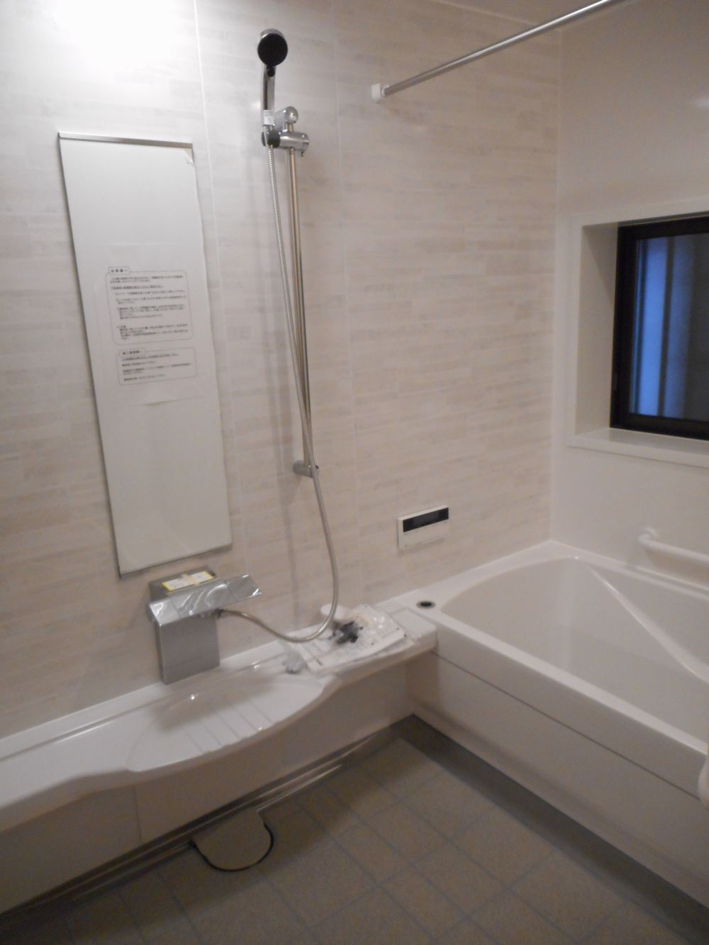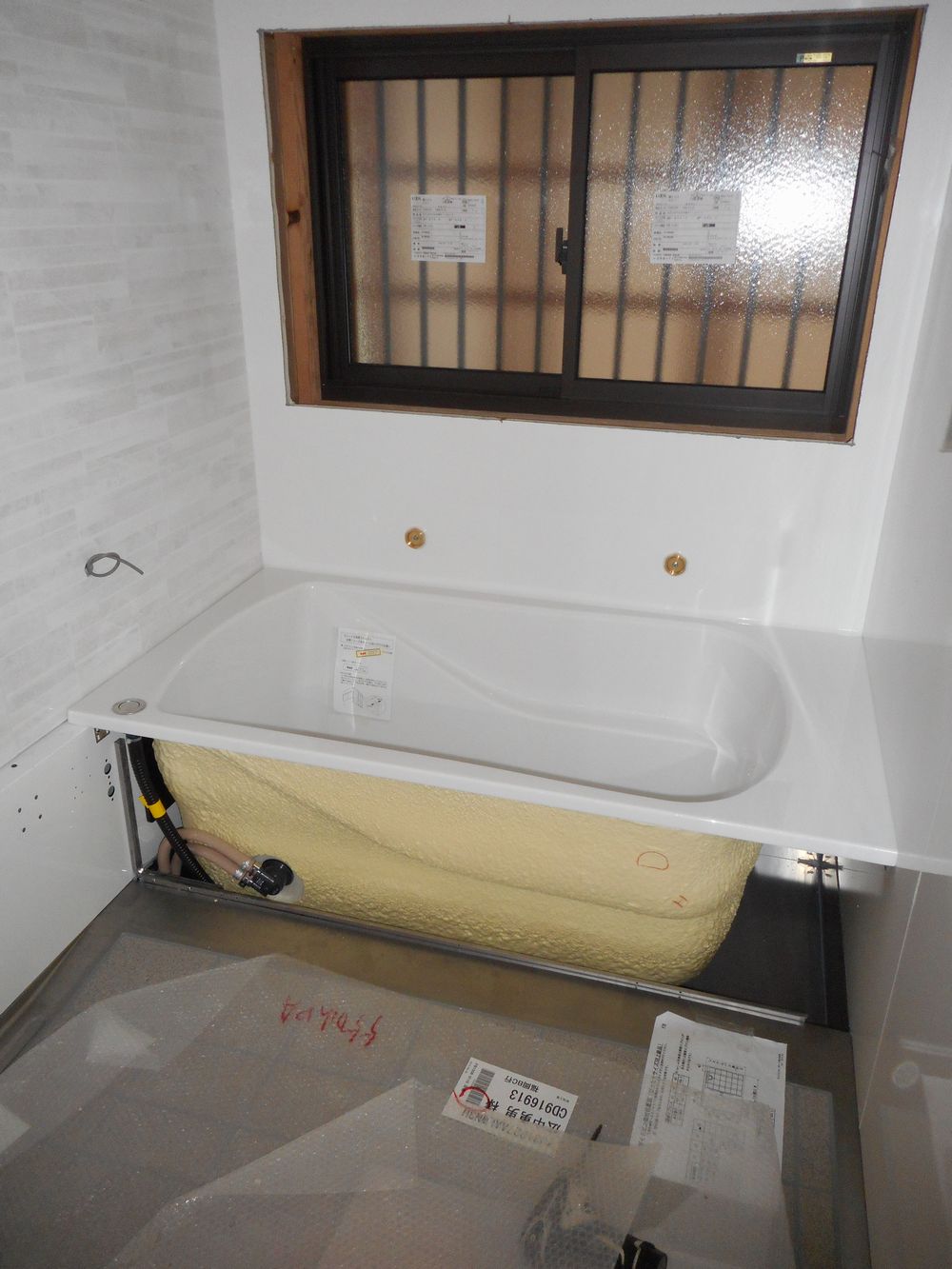 | 洗面所側のパネルも組付けました!! | 浴槽を組み込みました!! |