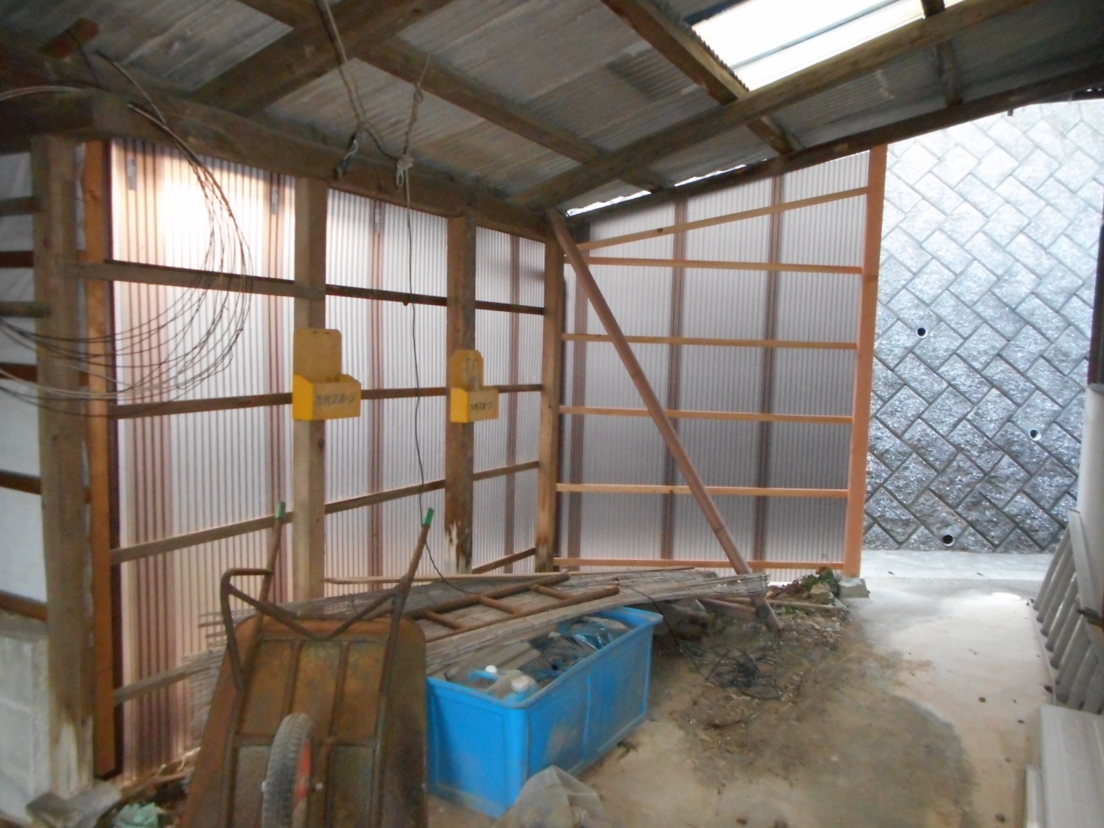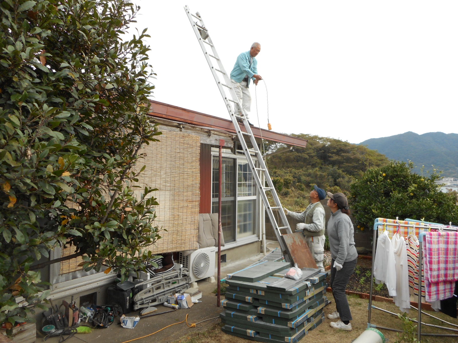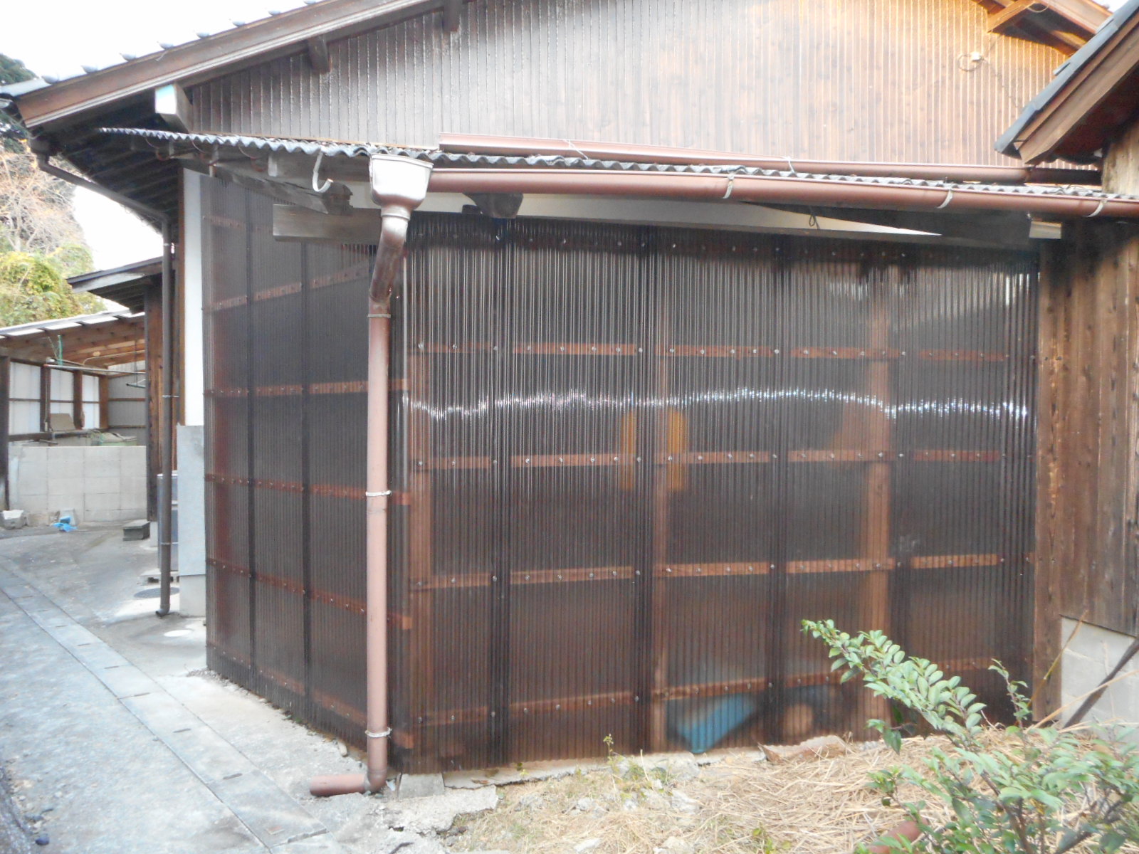 当社の近くの垢田某邸でも、やはり8月の台風の時に倉庫の波板が飛んだと言うことで、最近になって修理依頼があり、こちらも先週修理をしたので紹介します。