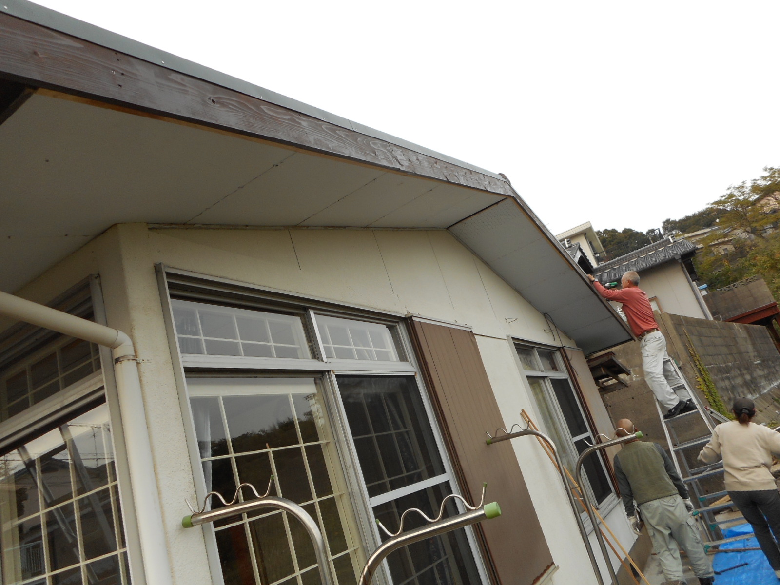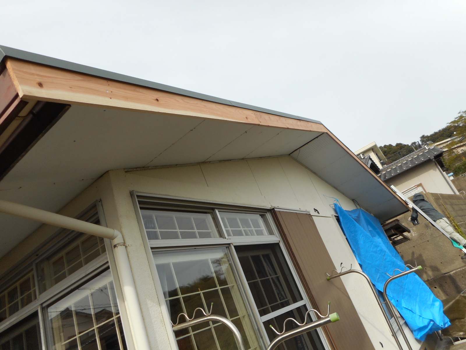 | 破風板を交換しました!! | 軒天も補修し、ひもを施工します!! |