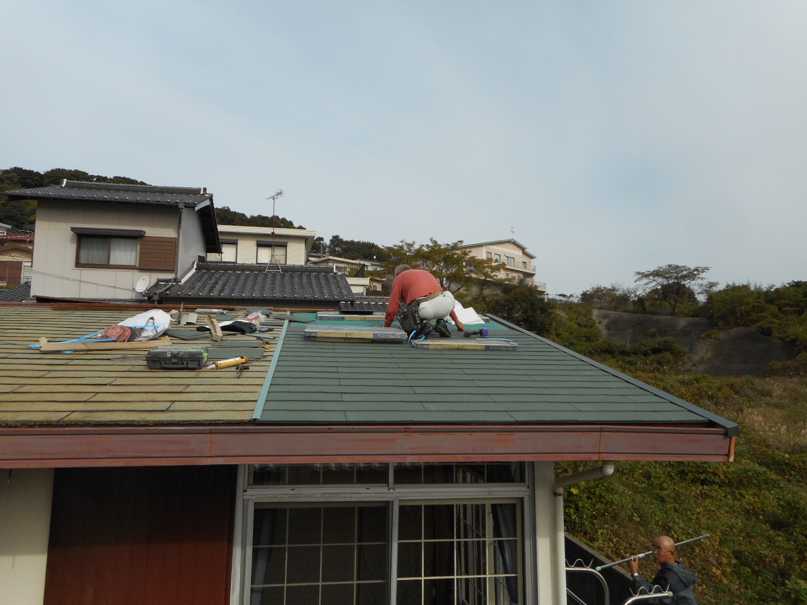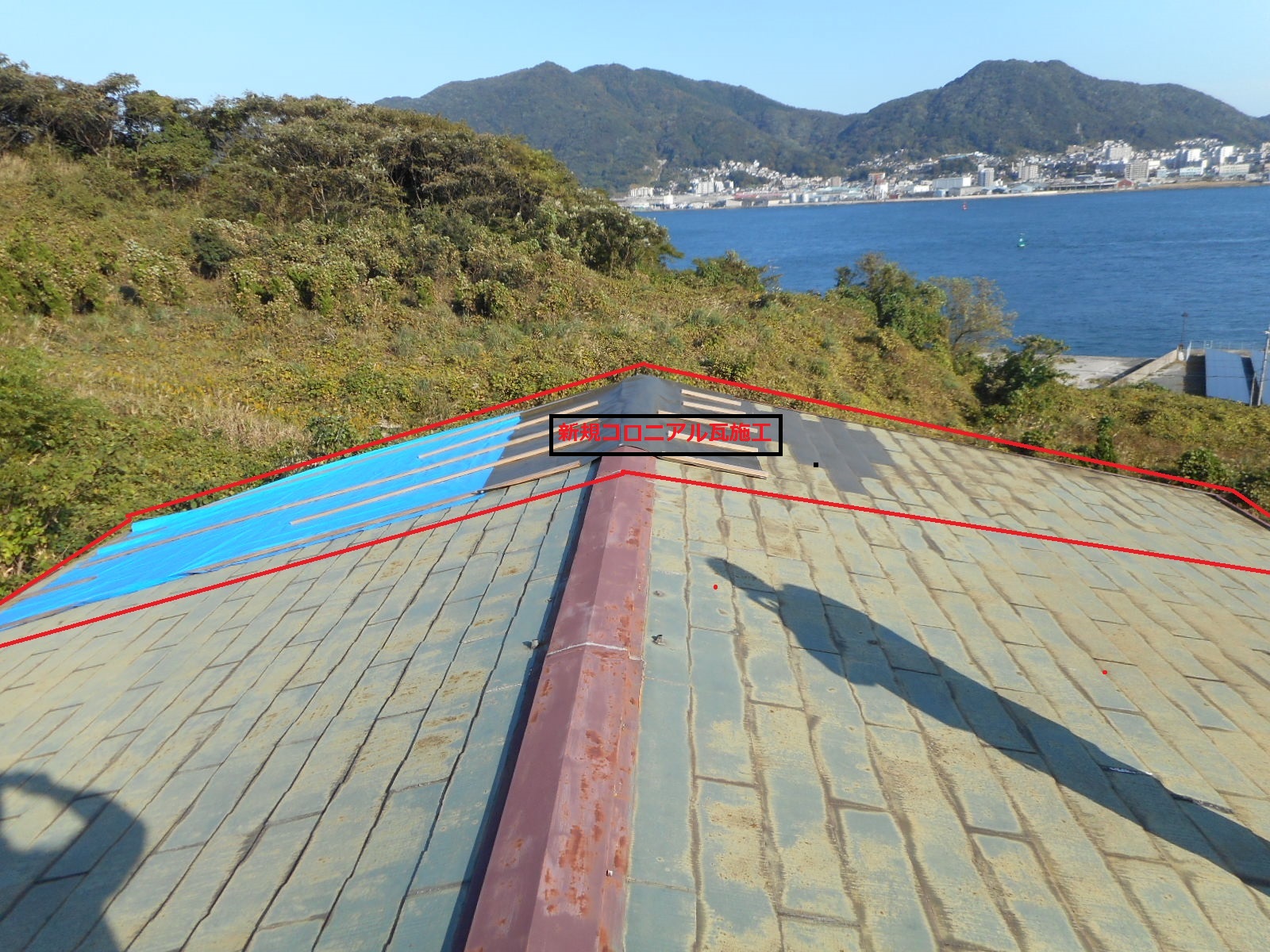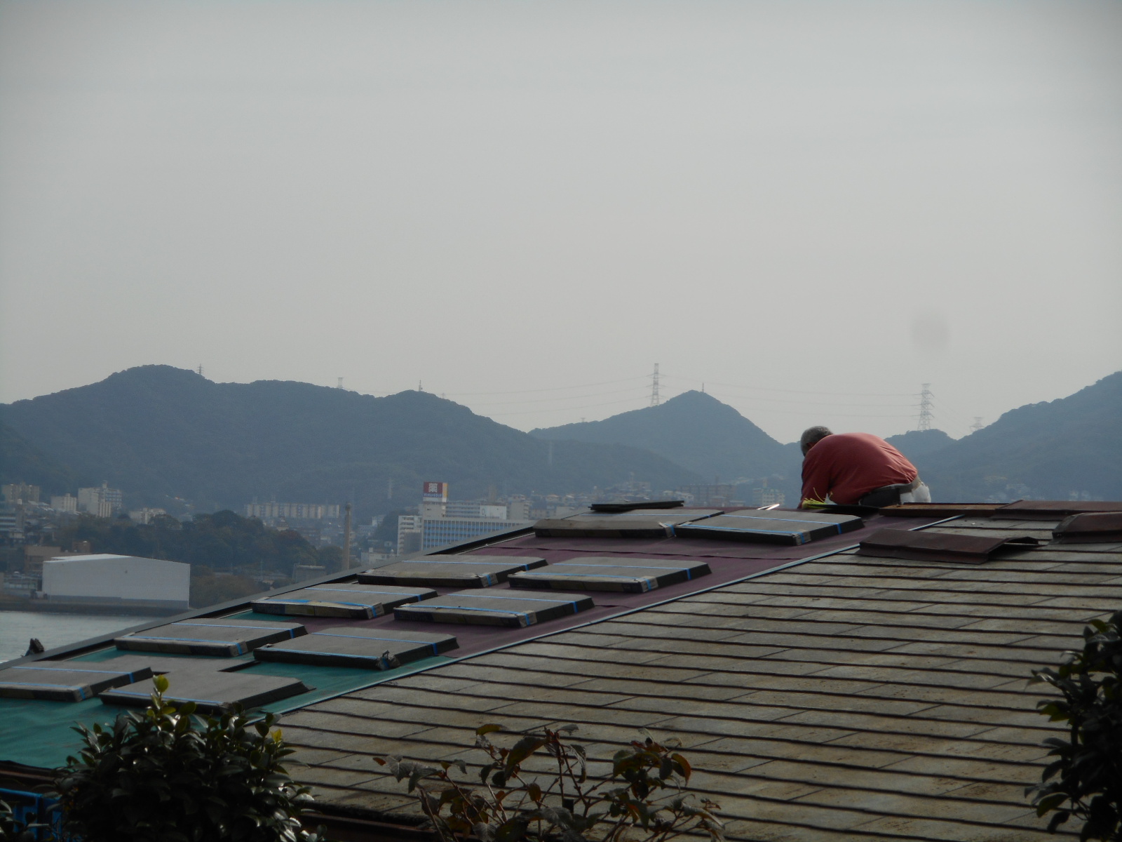 両側に水切りを施工し、順次新規のコロニアル瓦を張って行きます!!