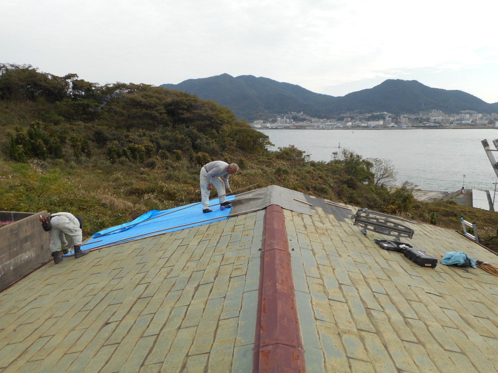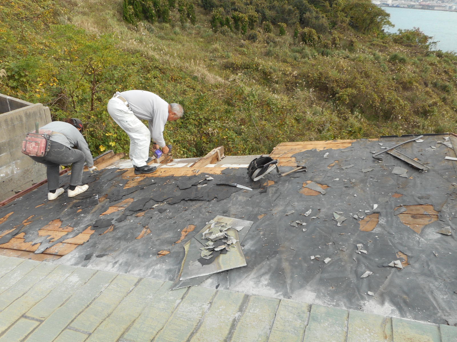 | 応急処置として敷いているシートを撤去します!! | シートの撤去が完了しました!! |
