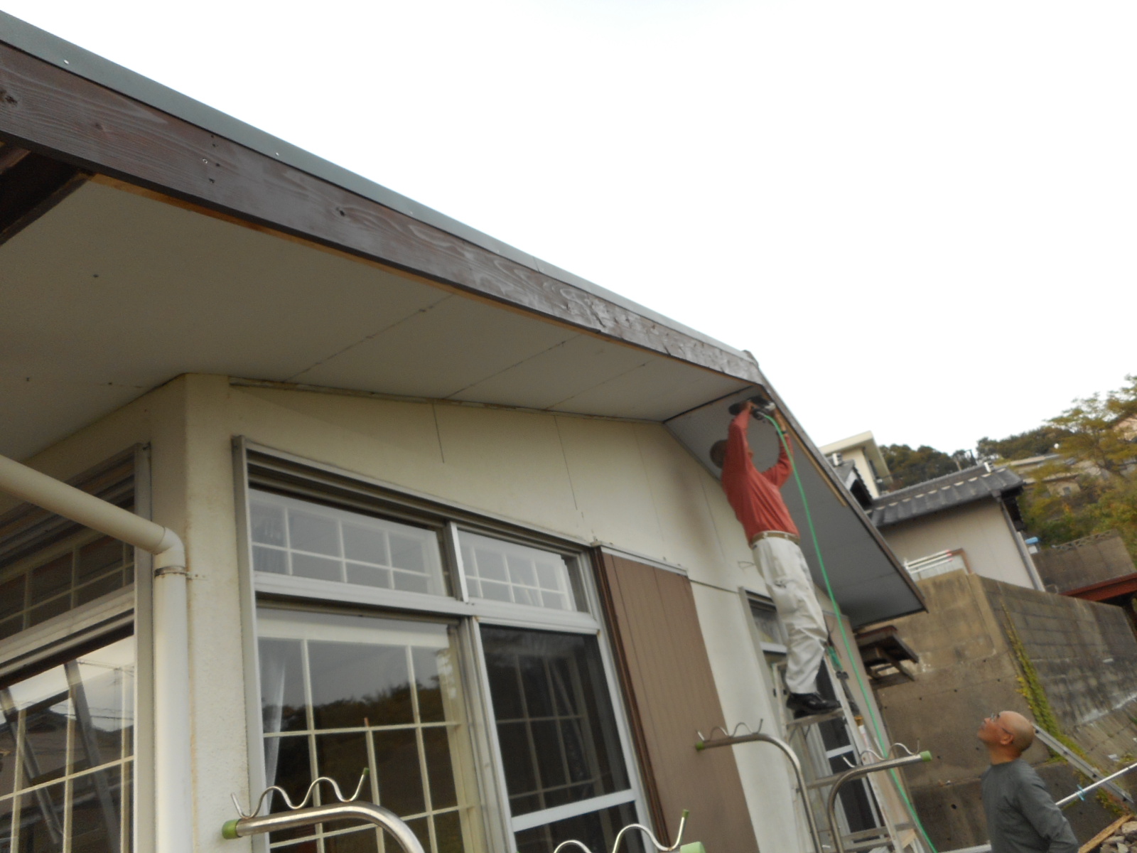 *下の破風板と軒天もご覧の様に状態が悪いので修理をします!!