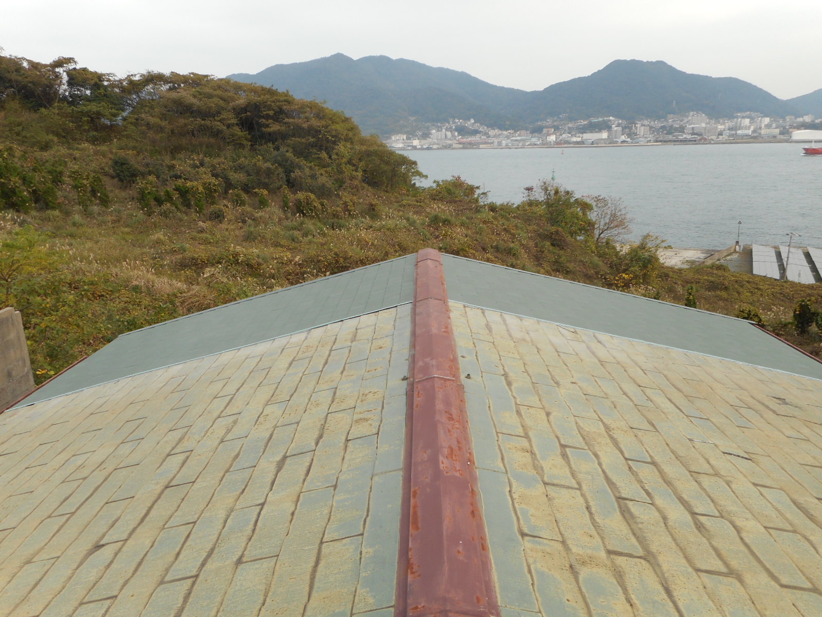 こちらのお宅は、8月末に下関を直撃した台風の時に赤線で囲った屋根の一部が剥がれ、室内に雨漏れがした様です。