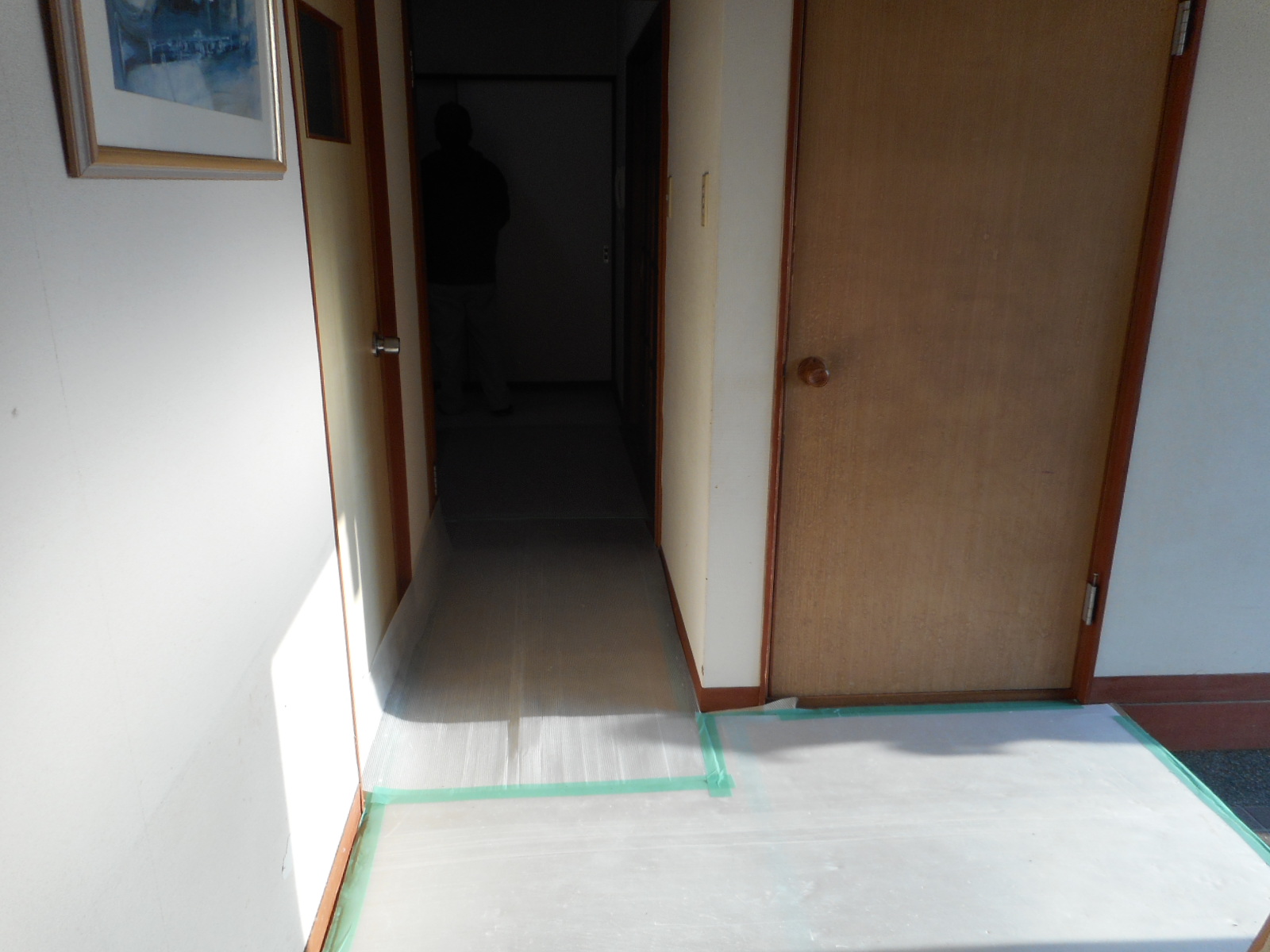| 最初に玄関から台所までの養生をします!! | 室内も養生をします!! |