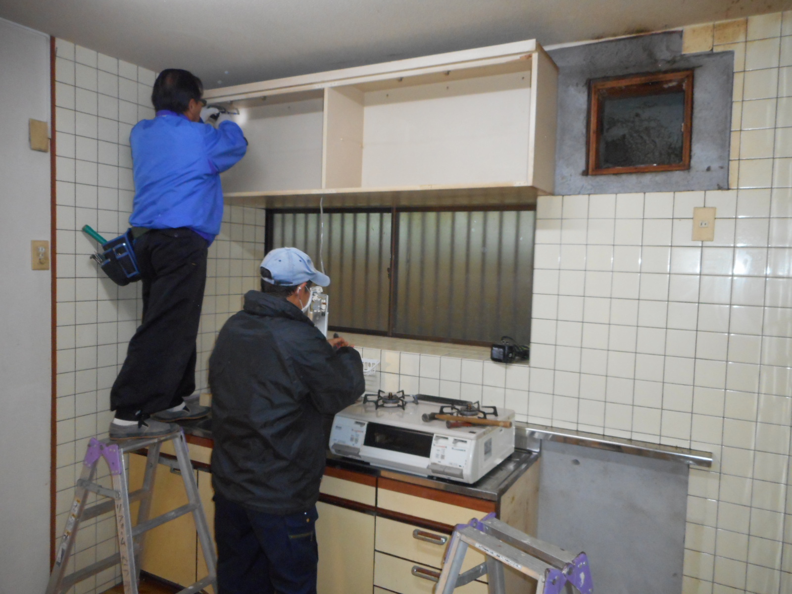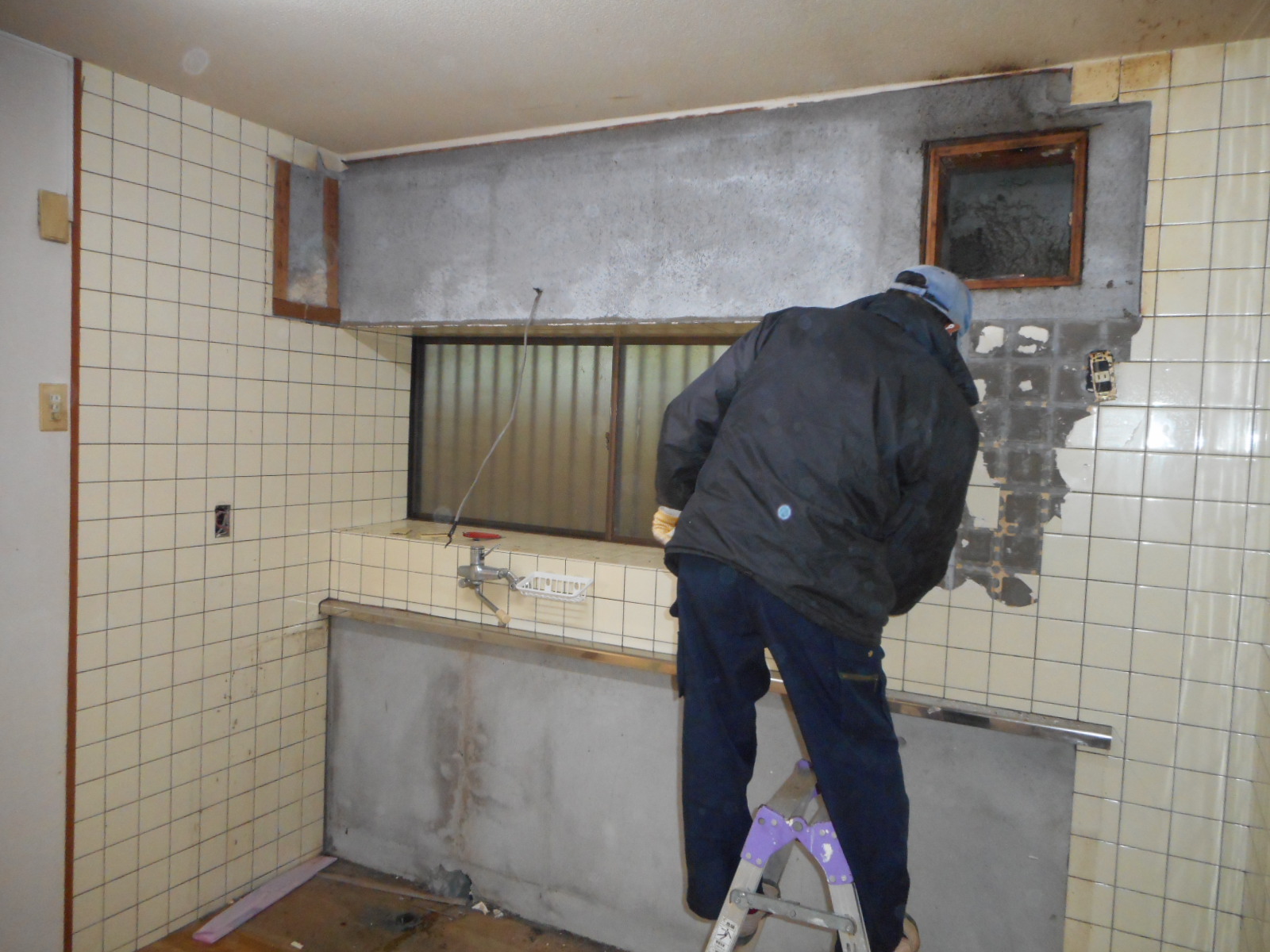 解体作業とキッチンパネルの下地づくりまでが完了しました。