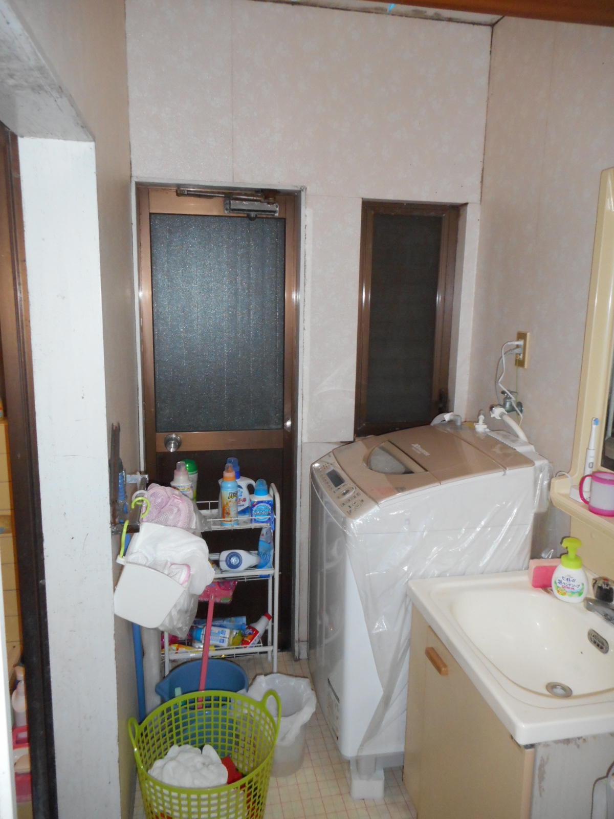 | 工事前の洗面所です!! → | 洗濯機や化粧台を撤去しました!! |