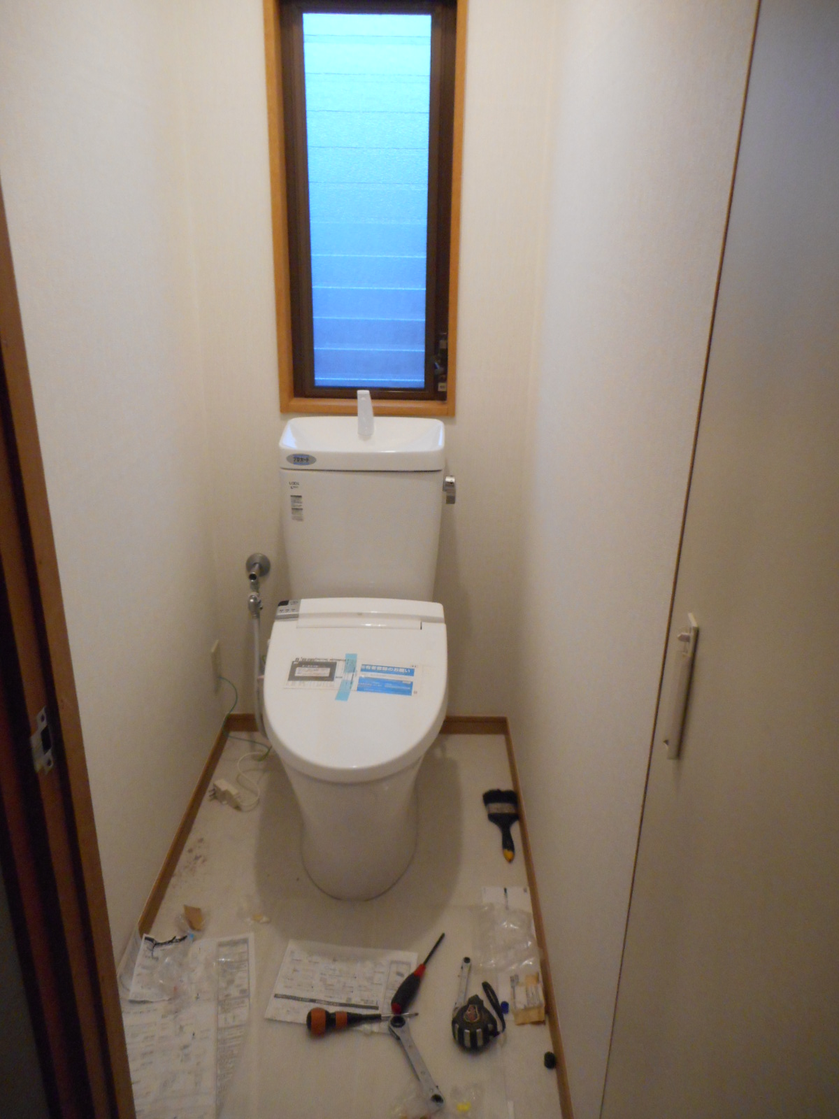 改修工事の内容は、現在の普通便座をウオシュレットに替え,便器、タンク、タオル掛け、紙巻器を新しくし、