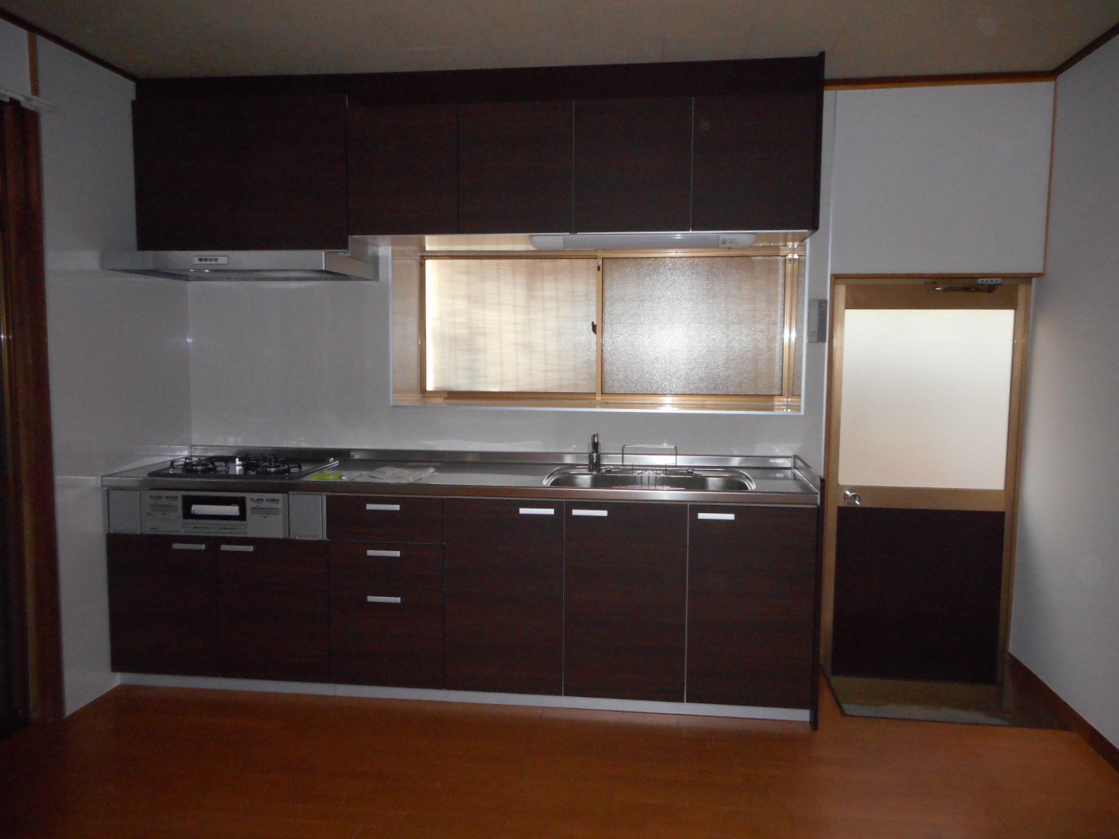 既設の流し台を解体、撤去し、キッチン廻りはキッチンパネルを施工し新規のシステムキッチンを