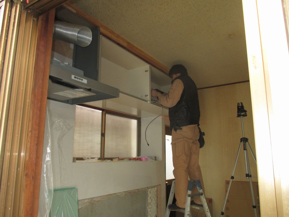| 下地づくりが完了しました!! | つづいて、システムキッチンの組立てを行います!! |