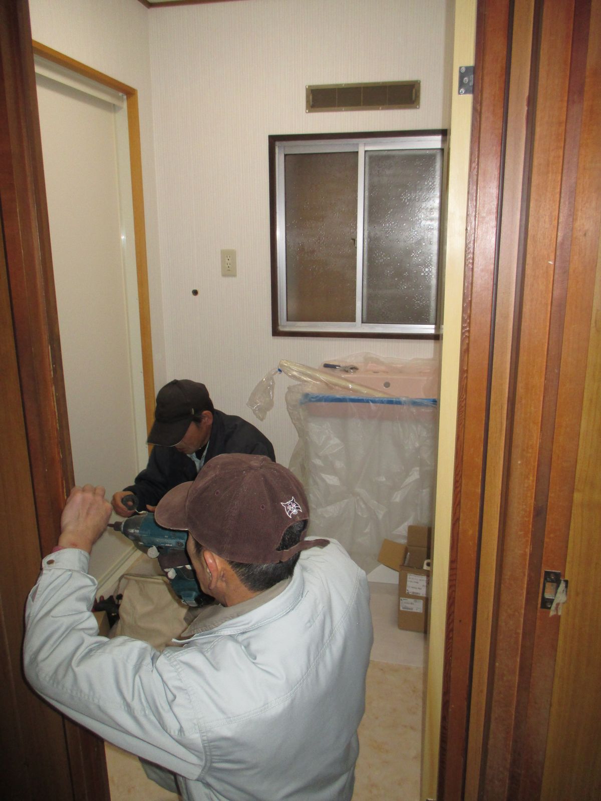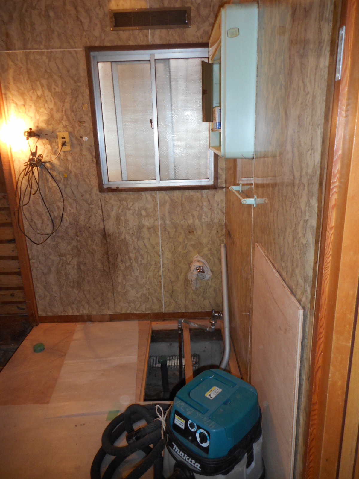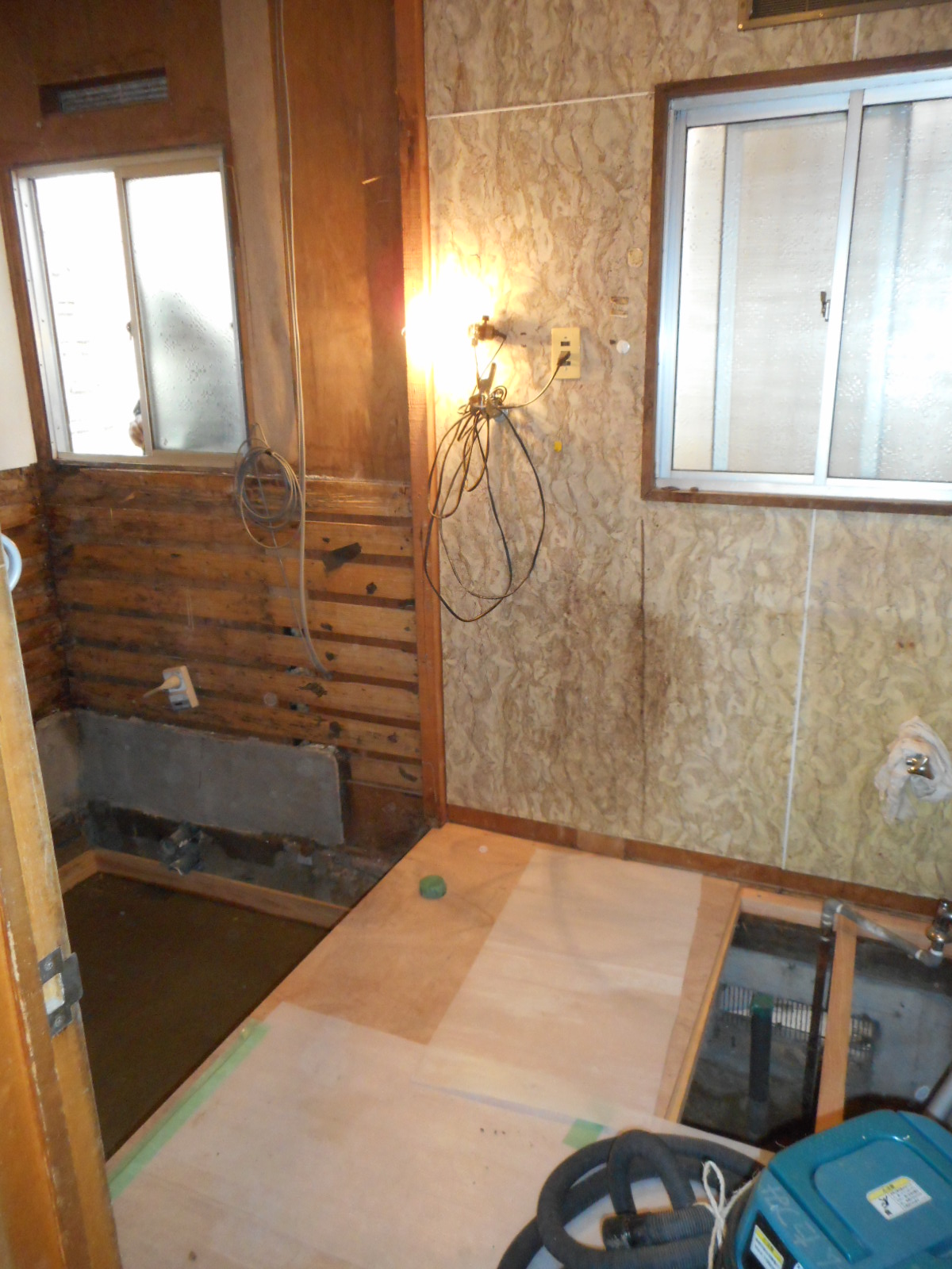 今回は、それと平行して行った洗面所の改修工事と、電気温水器からガス給湯器への交換工事の作業を紹介します。