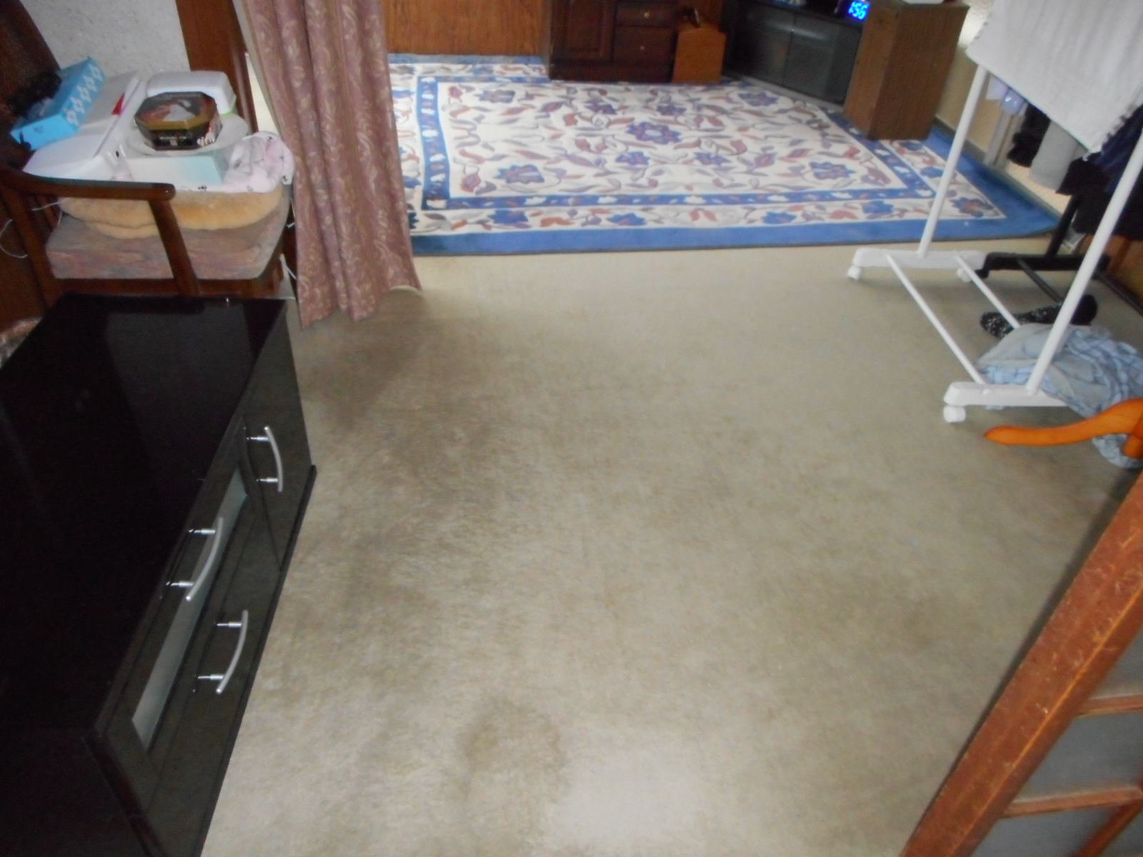 約10畳の床には、ご覧の様にジュウタンが敷かれていますが、下はフローリングで一部がブカブカするところがあるのでその部分を補修し、既存の上から新規のフロア材を施工します。