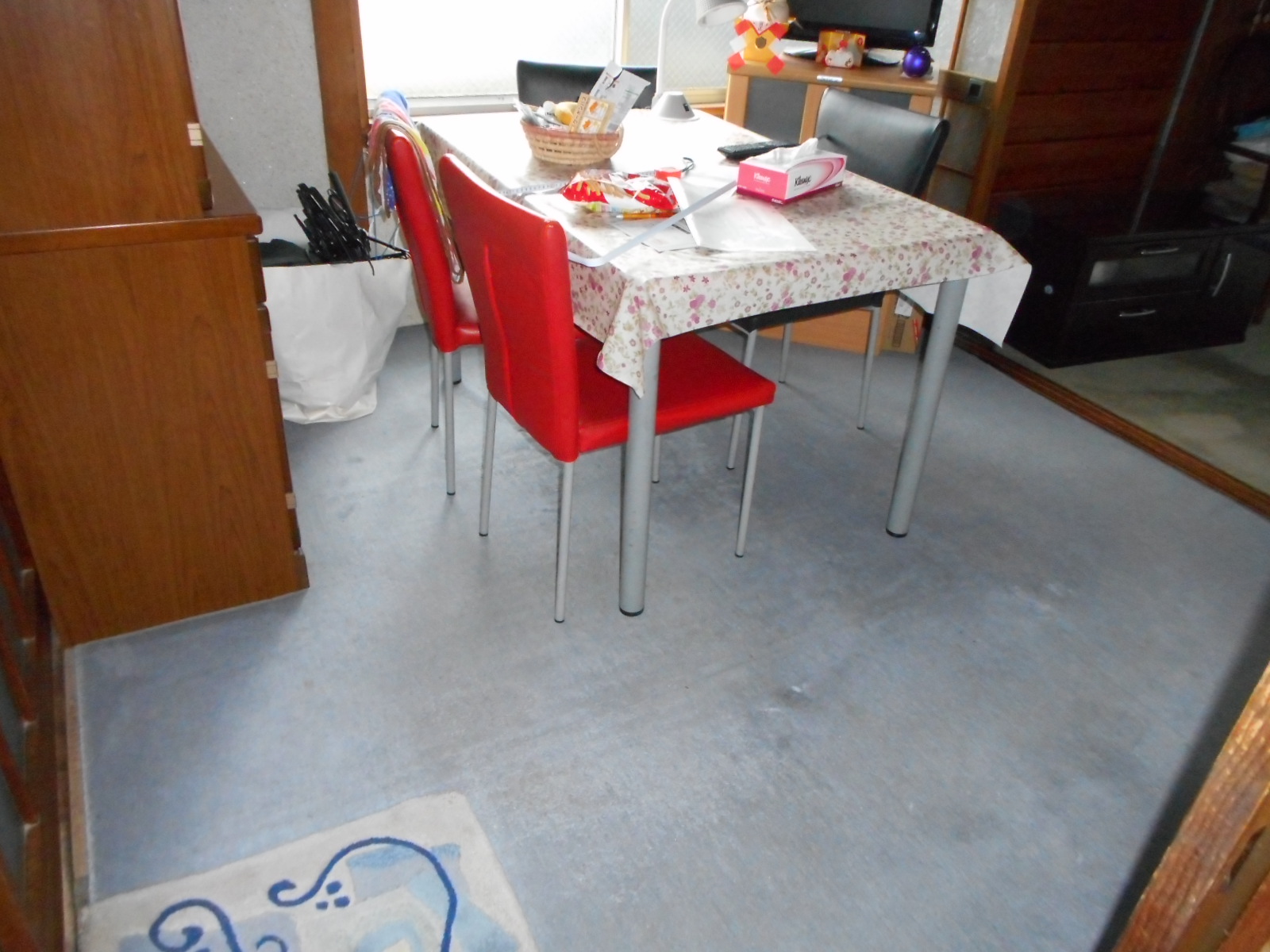 4,5畳のこの部屋は、ご覧の様にジュウタンが敷かれていますが下は畳なので、テーブルを置く部屋が畳では良くないと言うことで、畳を撤去してフローリングを張ることになりました。