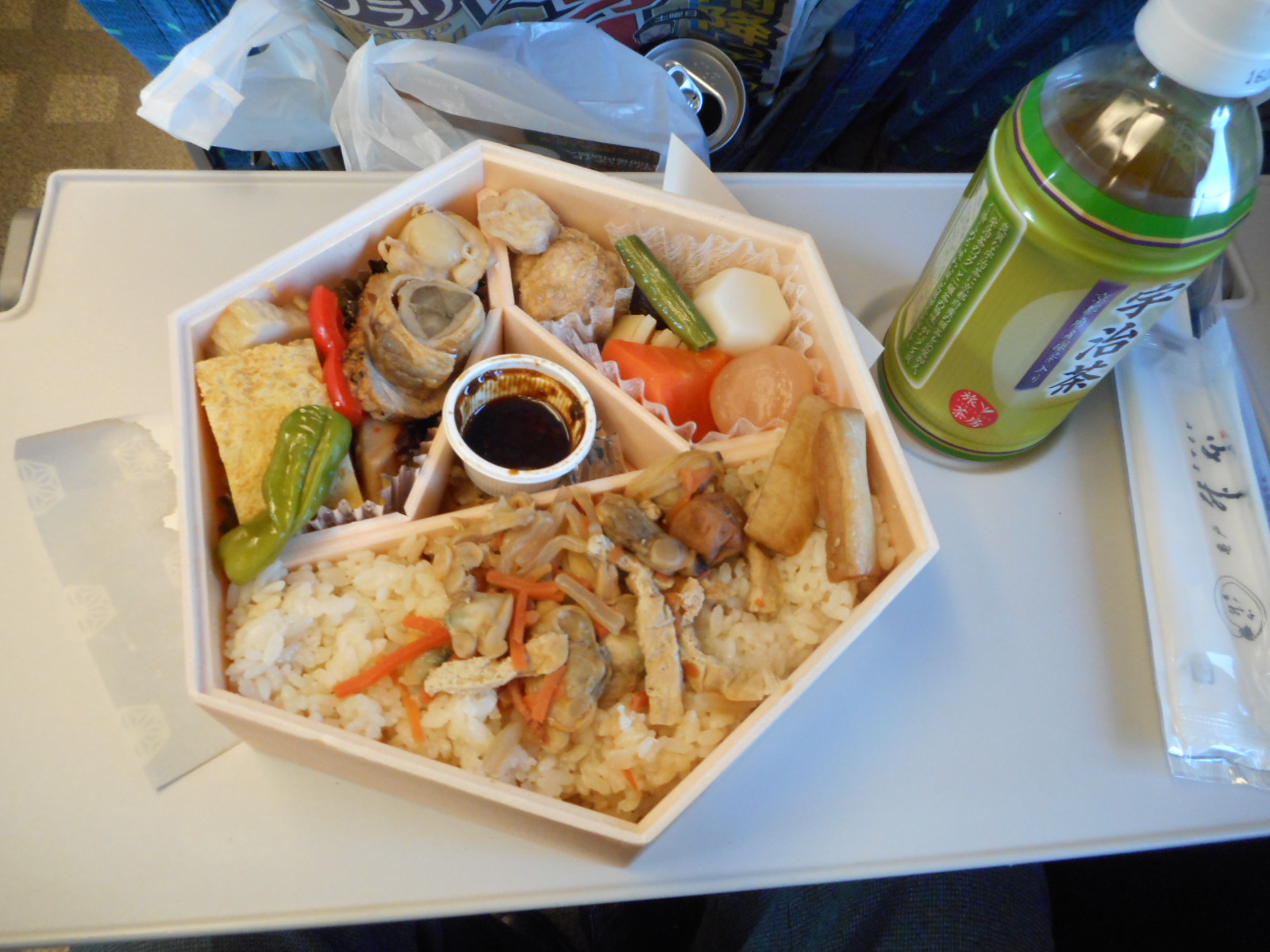 お楽しみは、やっぱり駅弁です(私は東京駅で買った「深川のあさり弁当」を食べました)!!