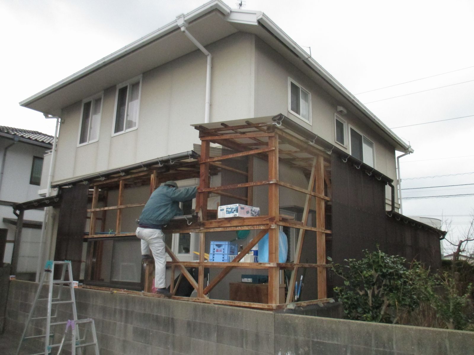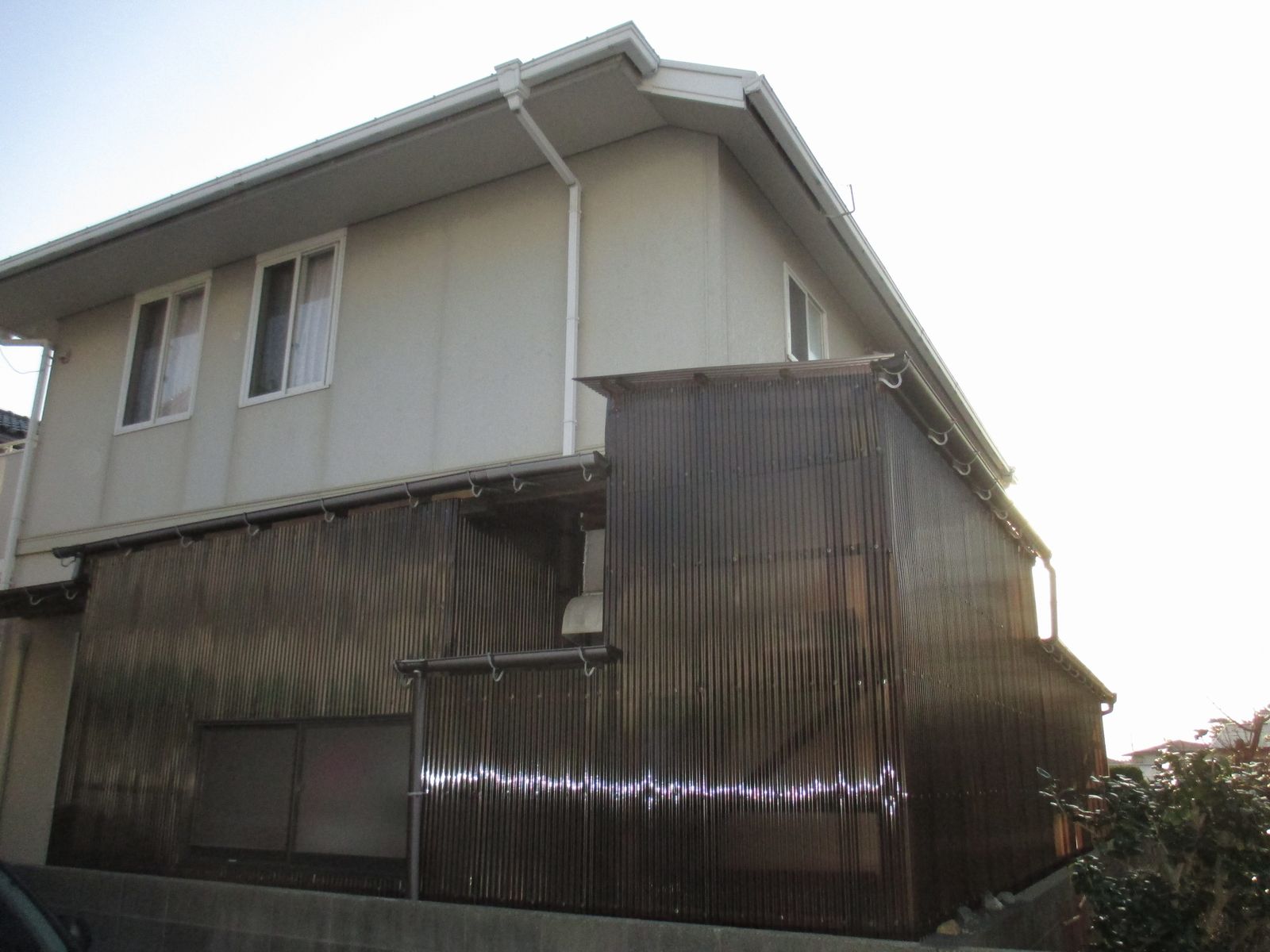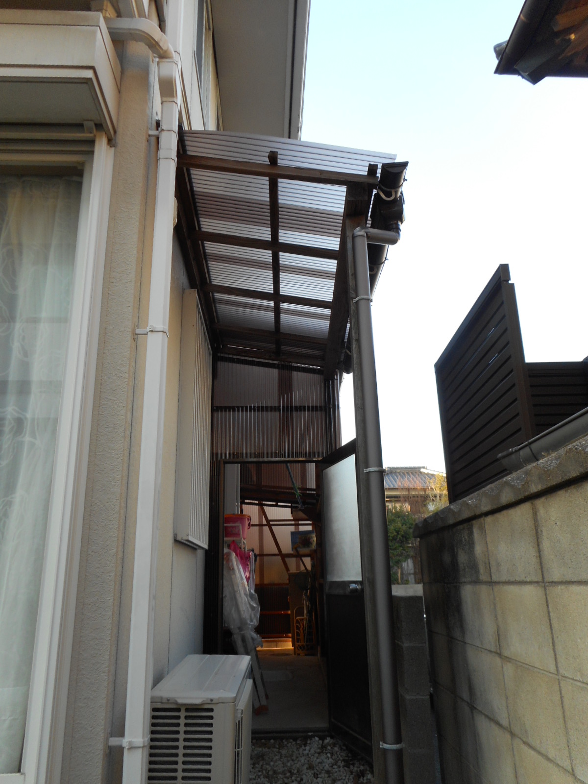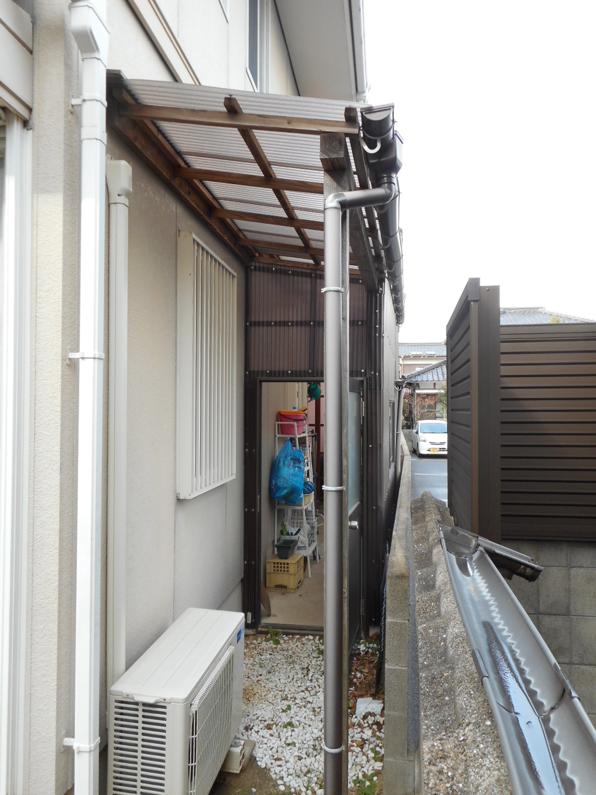 正面(玄関側)の屋根の波板を撤去しました!! 側面の波板を張替え、屋根の波板を張って行きます!!