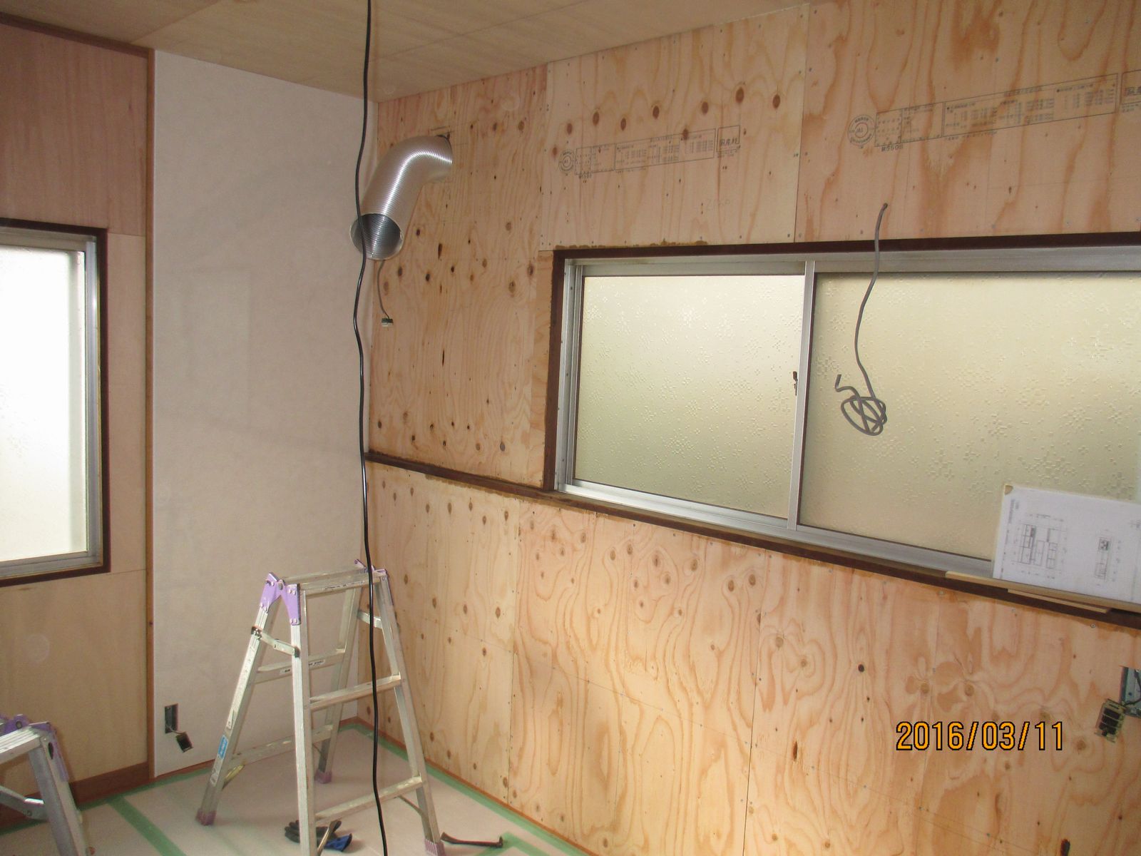 | キッチン廻りにパネルを施工します!! | 順次、キッチンパネルを施工して行きます!! |