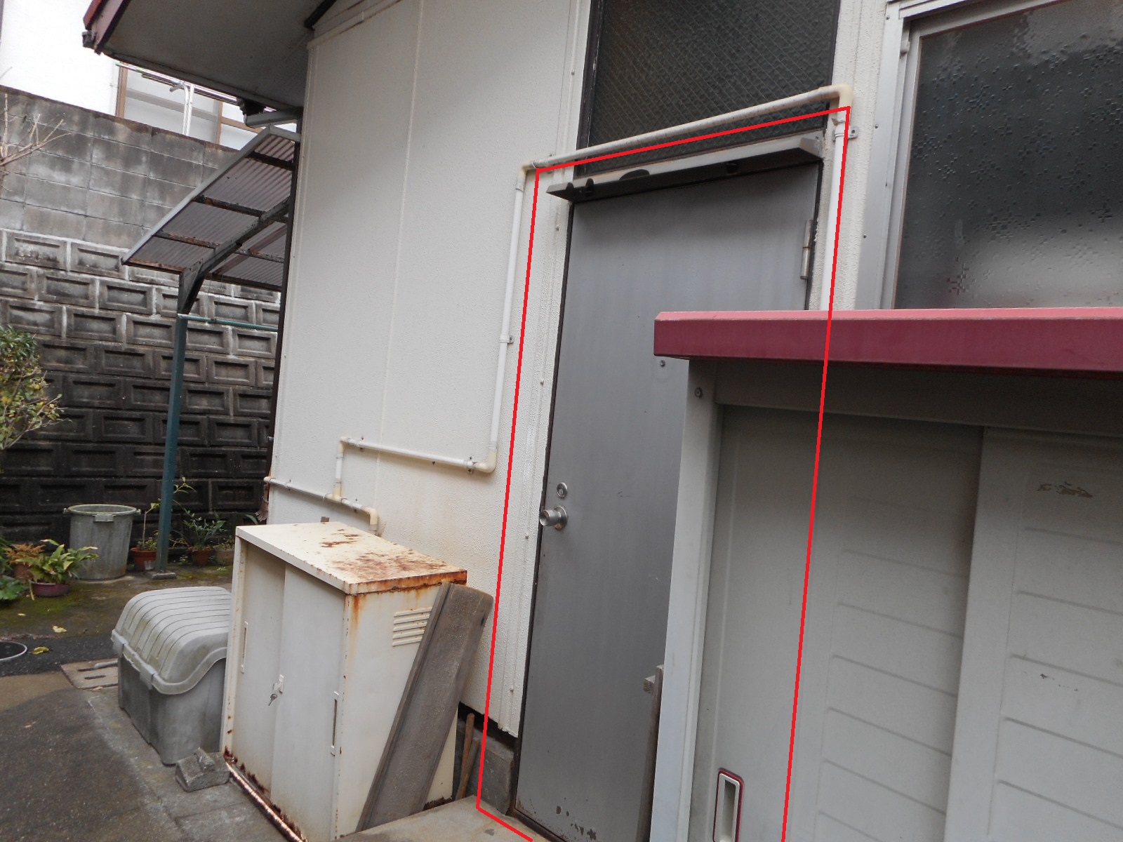 既存の勝手口ドア(□)が古くなり鍵も壊れてしまったので、交換することになりました。