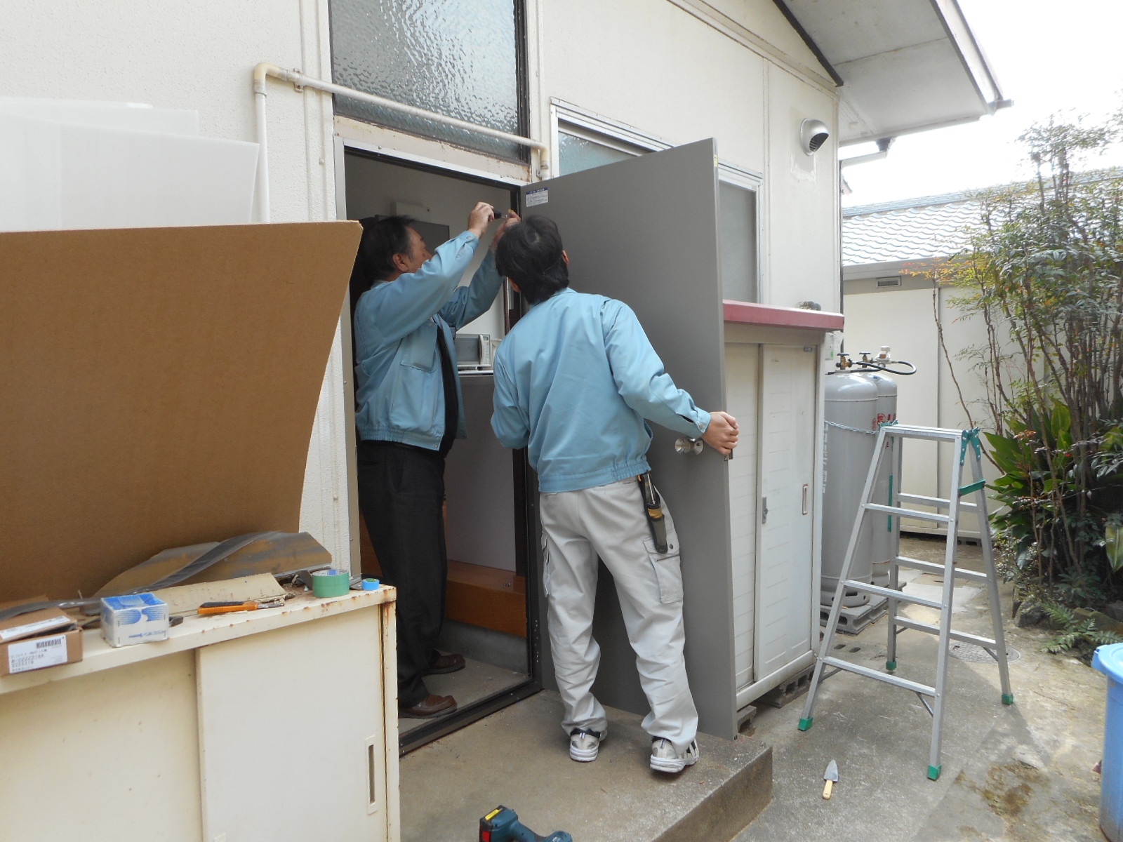| 新規のドアを取付けます!! | ドアクローザーを取付け、作業の終了です!! |