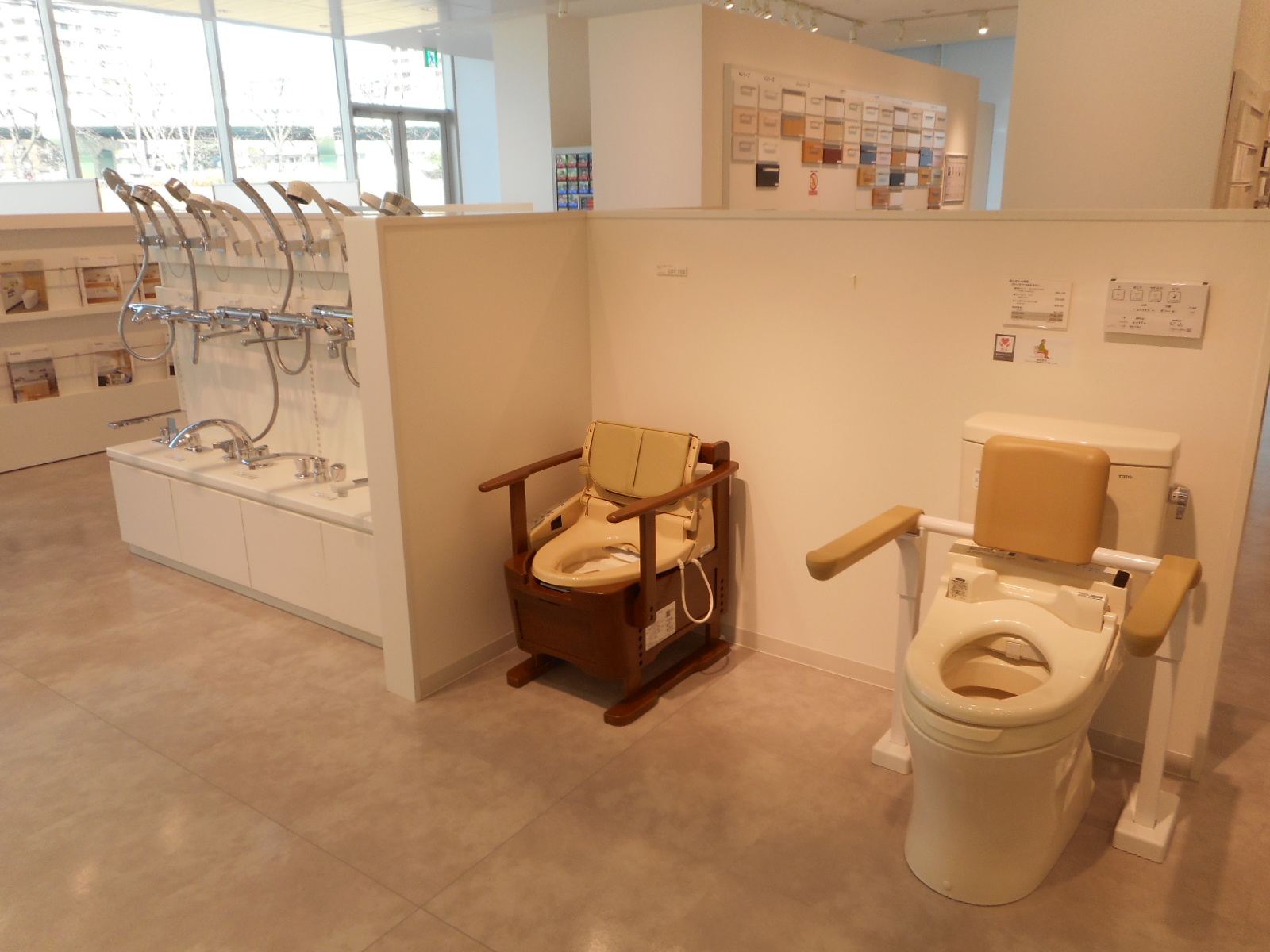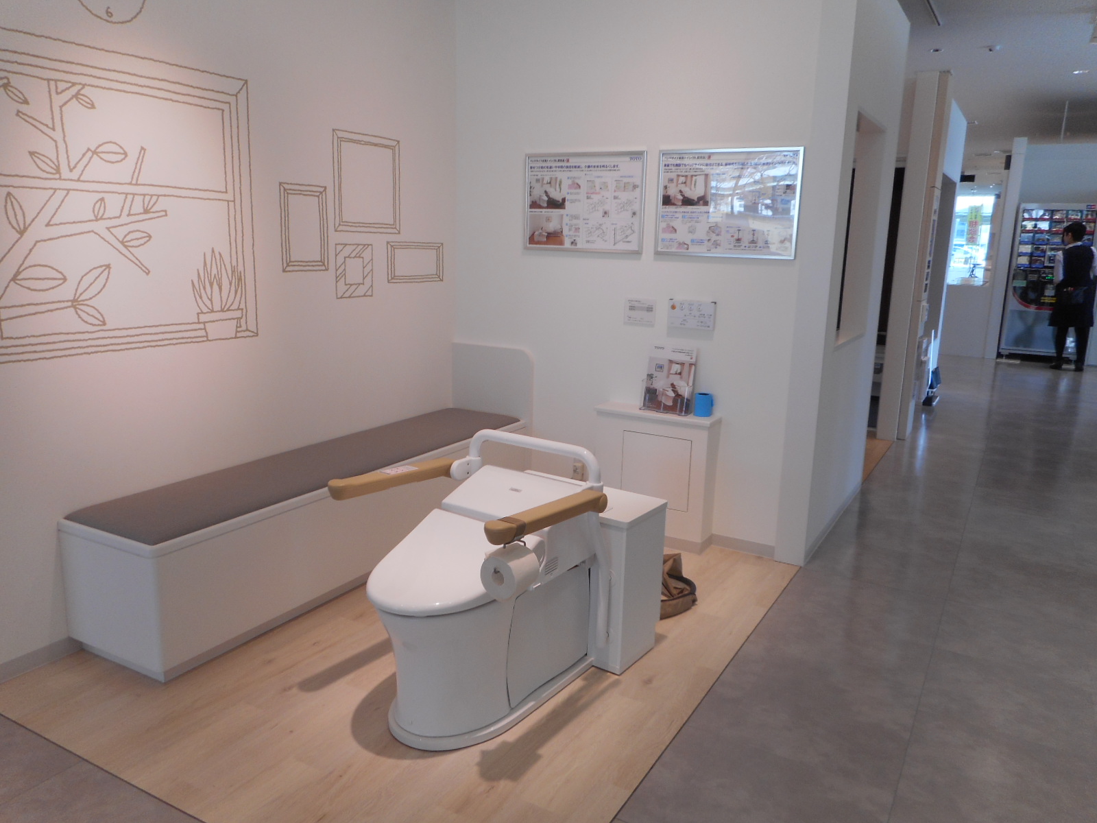 介護用の商品も、沢山展示されています!!  ベッドの傍に設置する、介護用トイレもあります!!