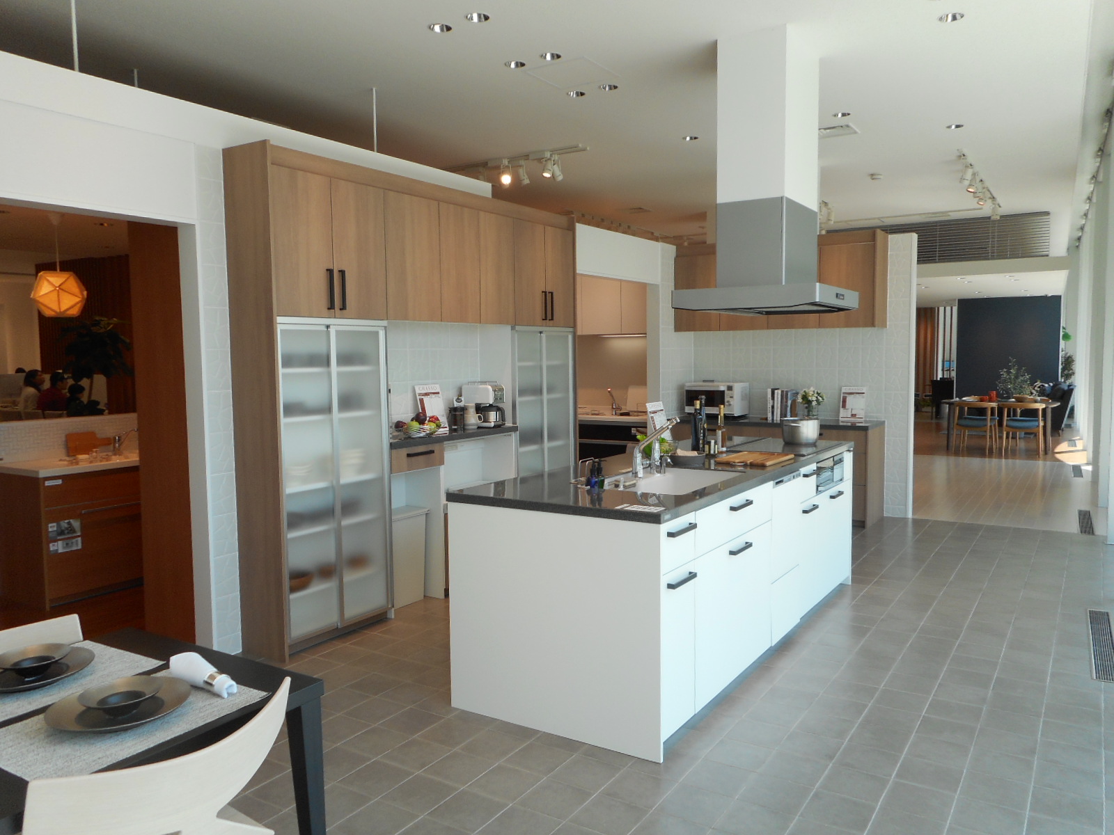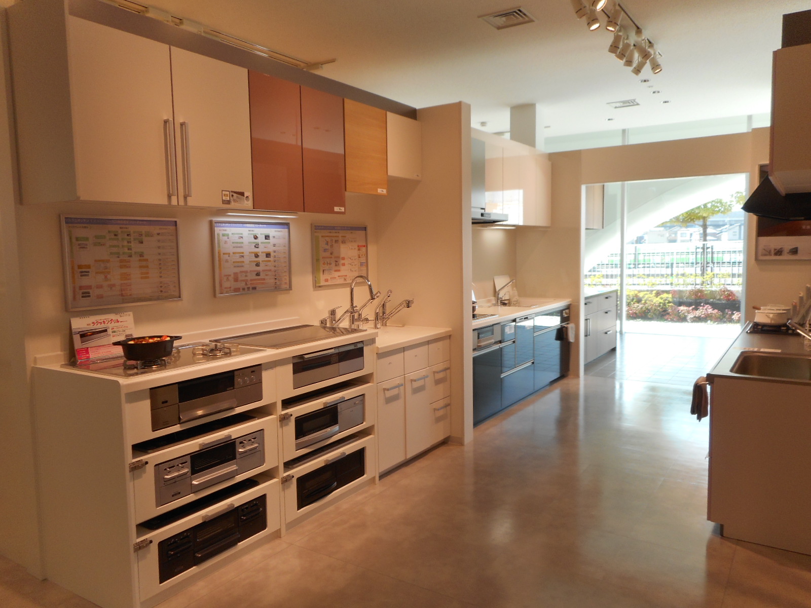 色々な、システムキッチンが展示されています!!  色々な加熱機器も展示されています!!