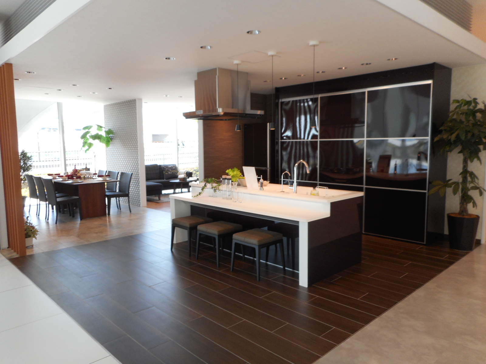 わりと、ゆったり目に展示されています!!  L型キッチン!!