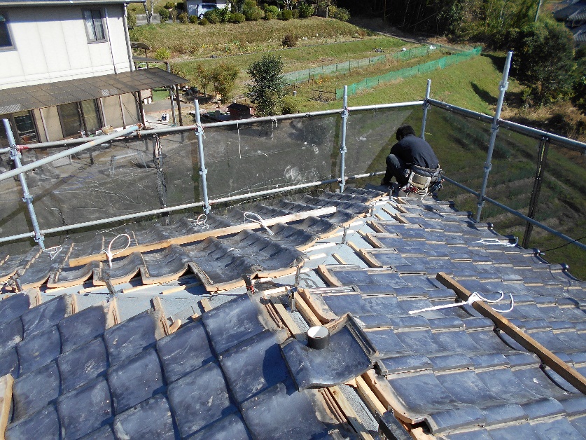 ◎この問題を解決するには、今の瓦を再利用した葺き戻し工事をするのが最適と判断し夏の暑い時期を避け先日作業を行いました。