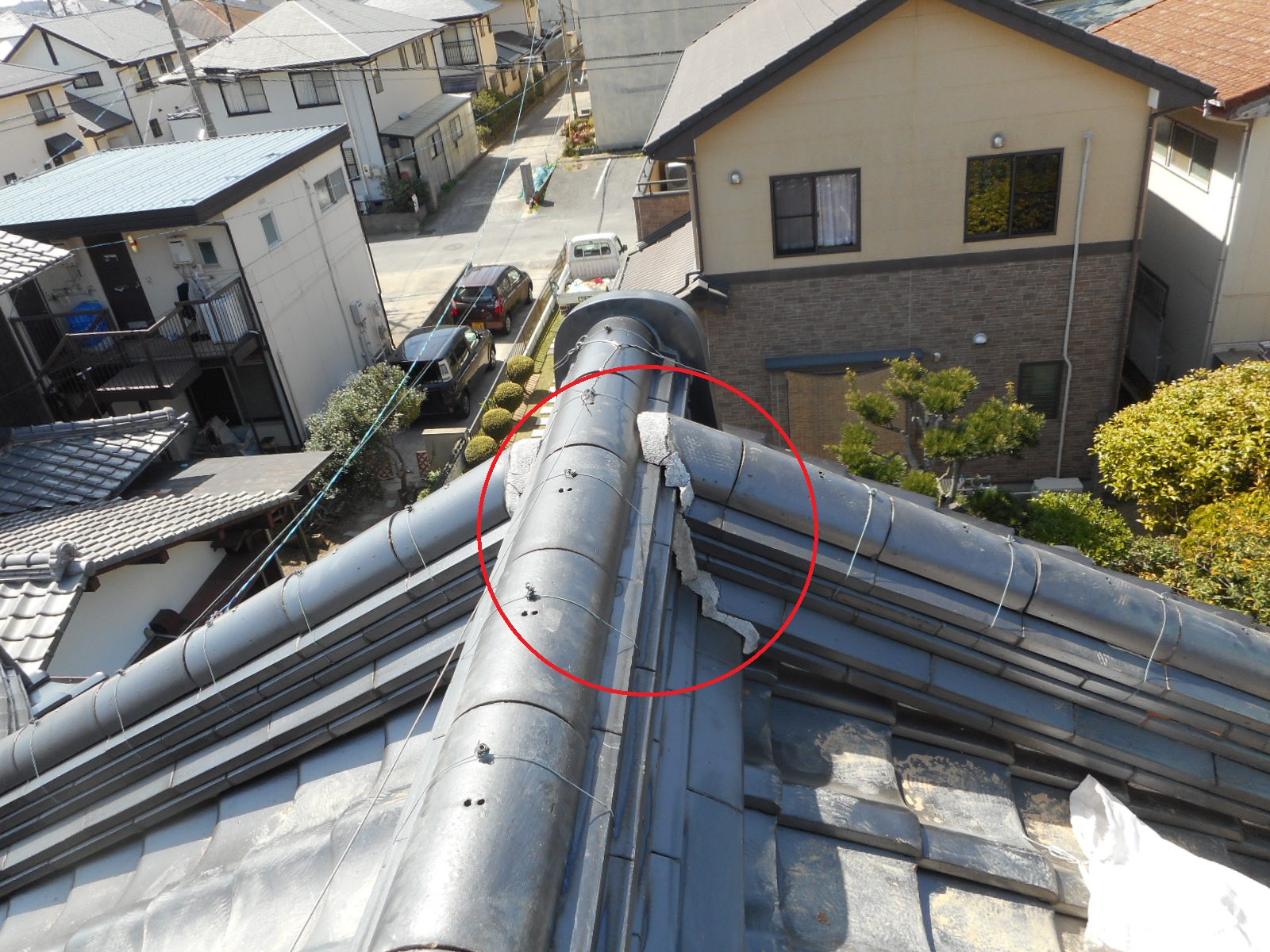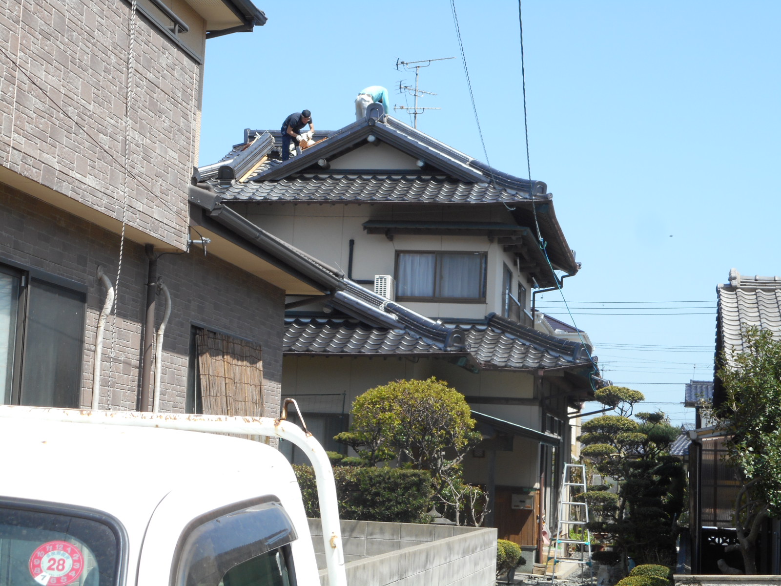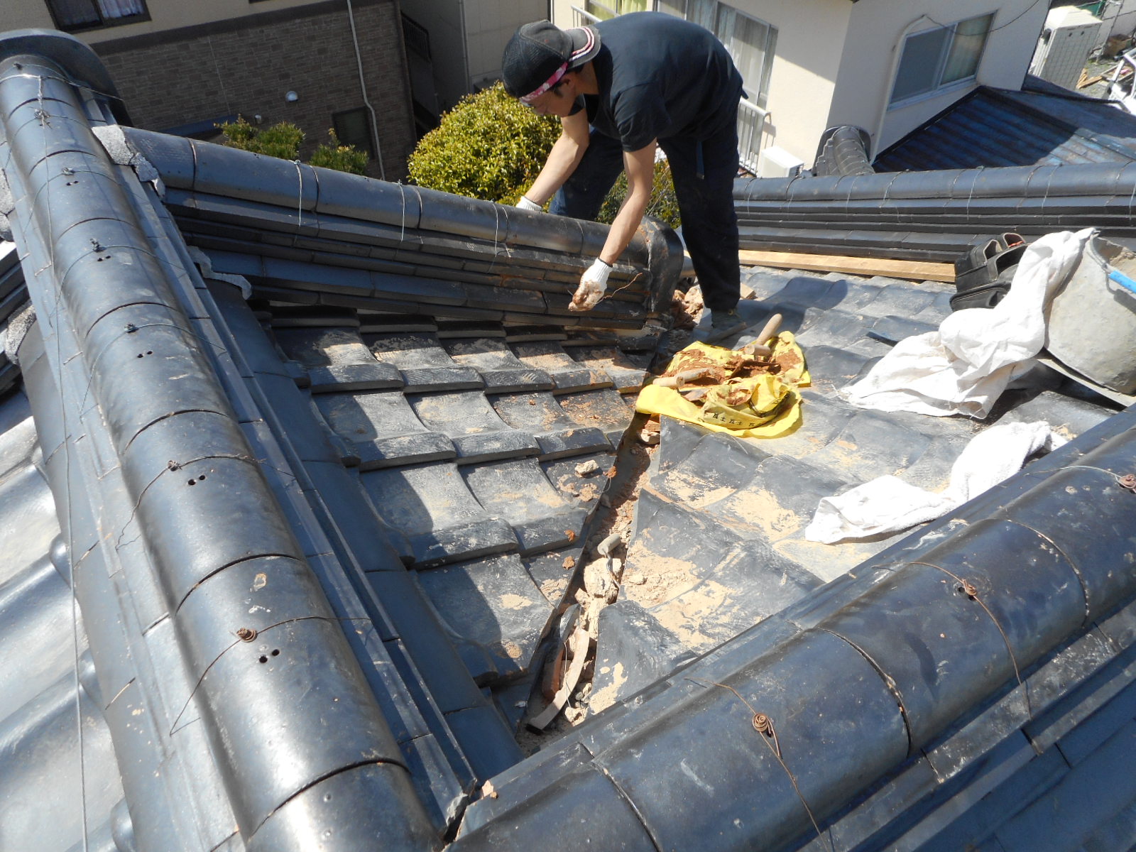 尾棟のノシ瓦の先端部分の一部を撤去します!!