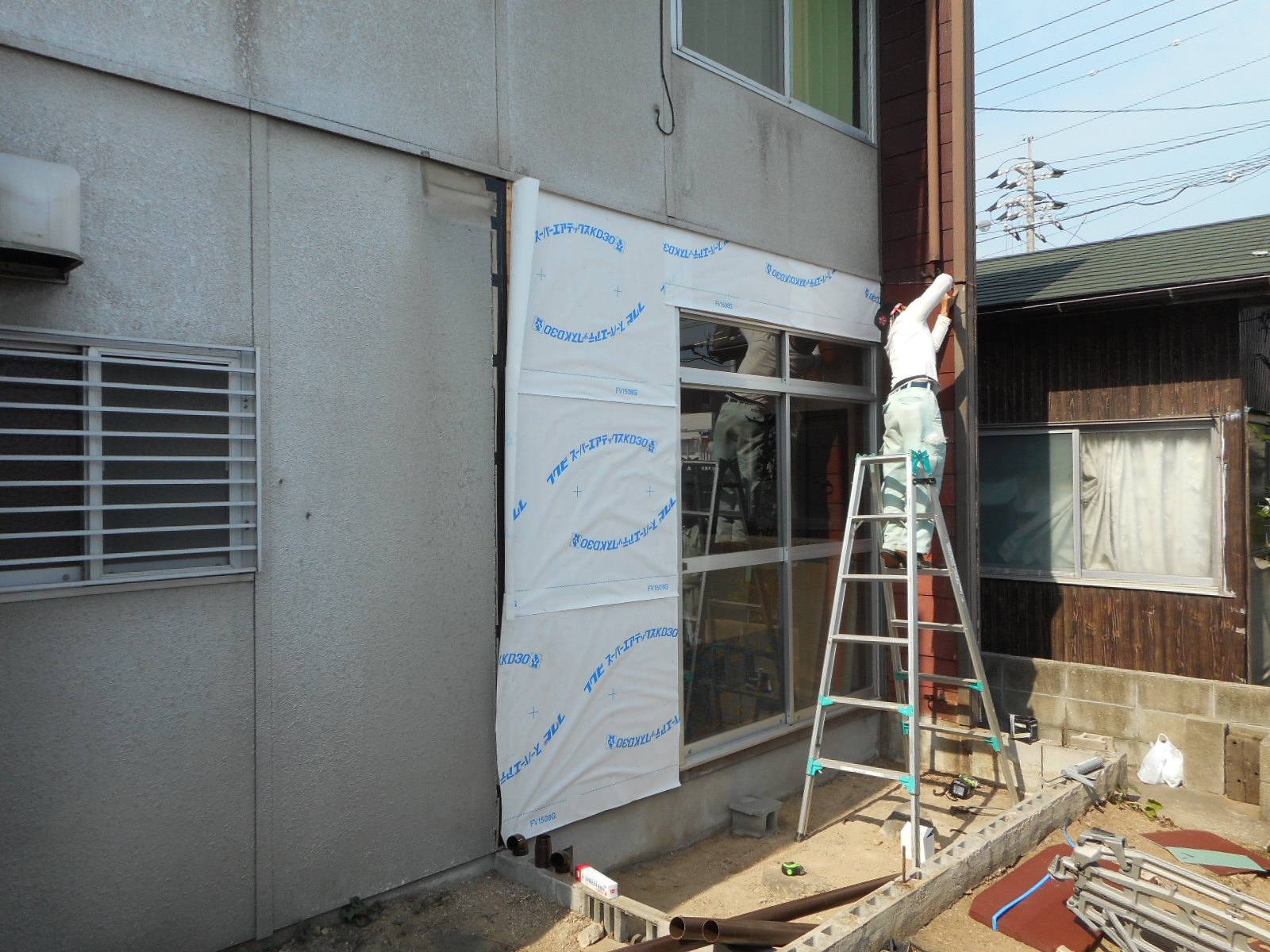 雨降り対策として防水、透湿シートを張りました(これで、とりあえずは雨が降っても大丈夫です)!!